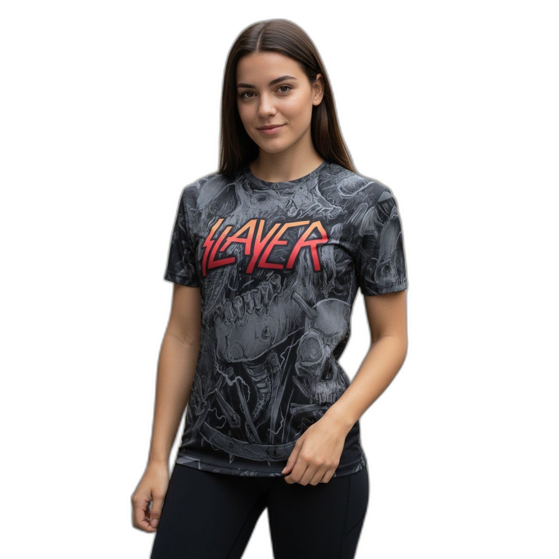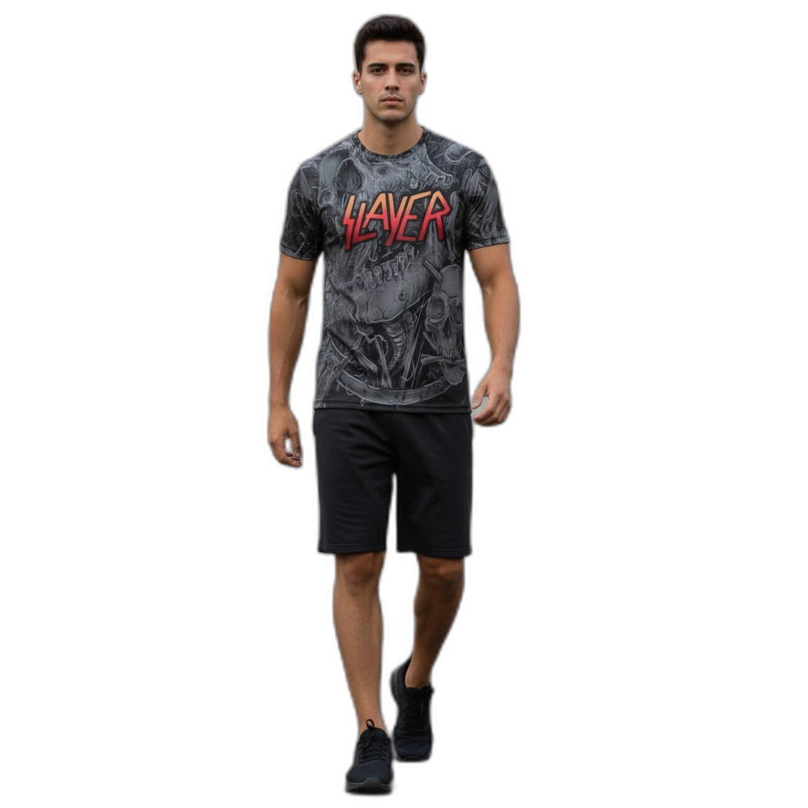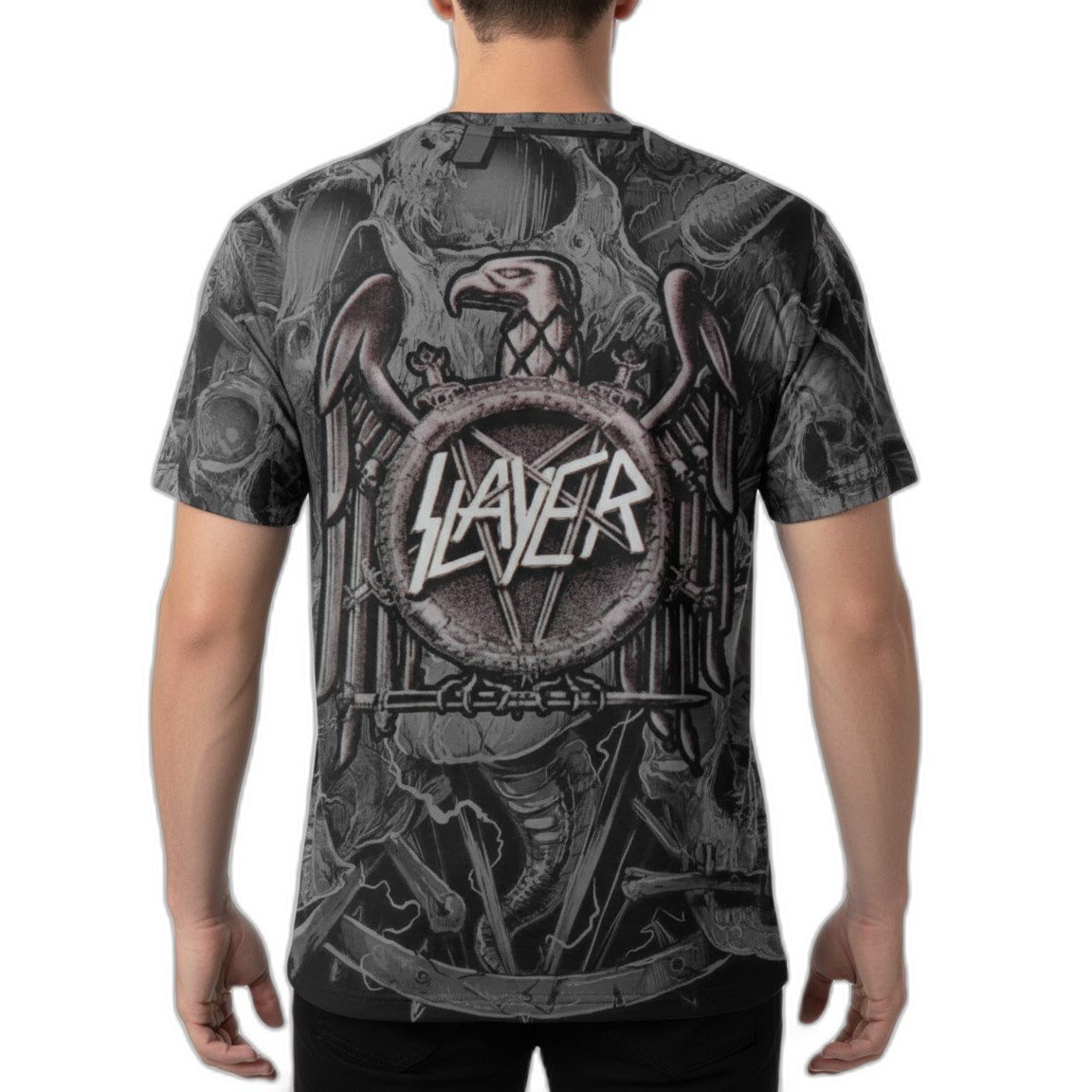 El diseño audaz presenta la emblemática gráfica de Slayer, una mezcla perfecta entre arte y actitud que resalta tu amor por el heavy metal. Su corte contemporáneo se adapta a todos los estilos, haciendo de esta remera una pieza versátil para combinar con jeans, chaquetas de cuero o incluso con tus looks más relajados.