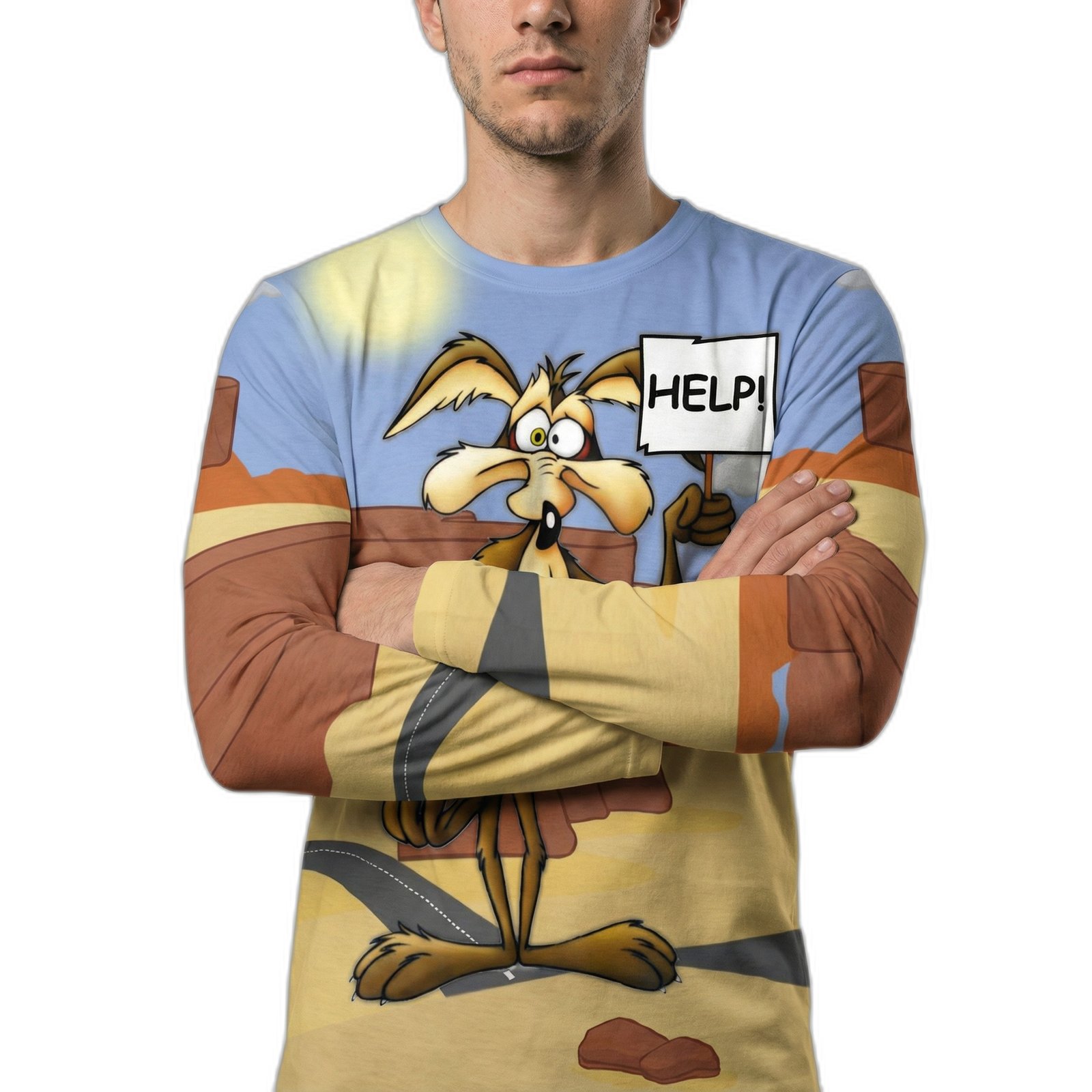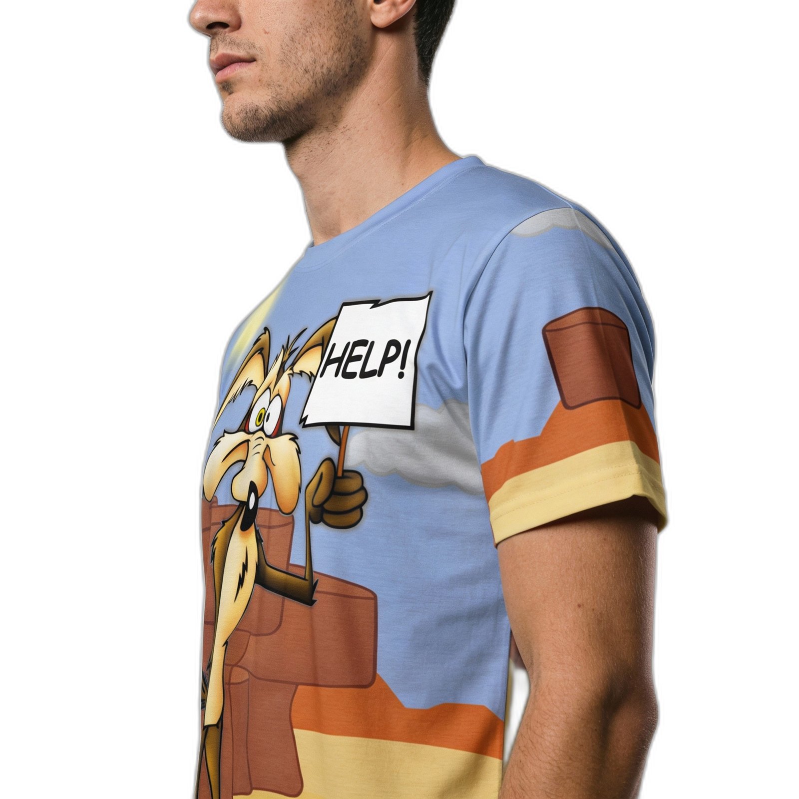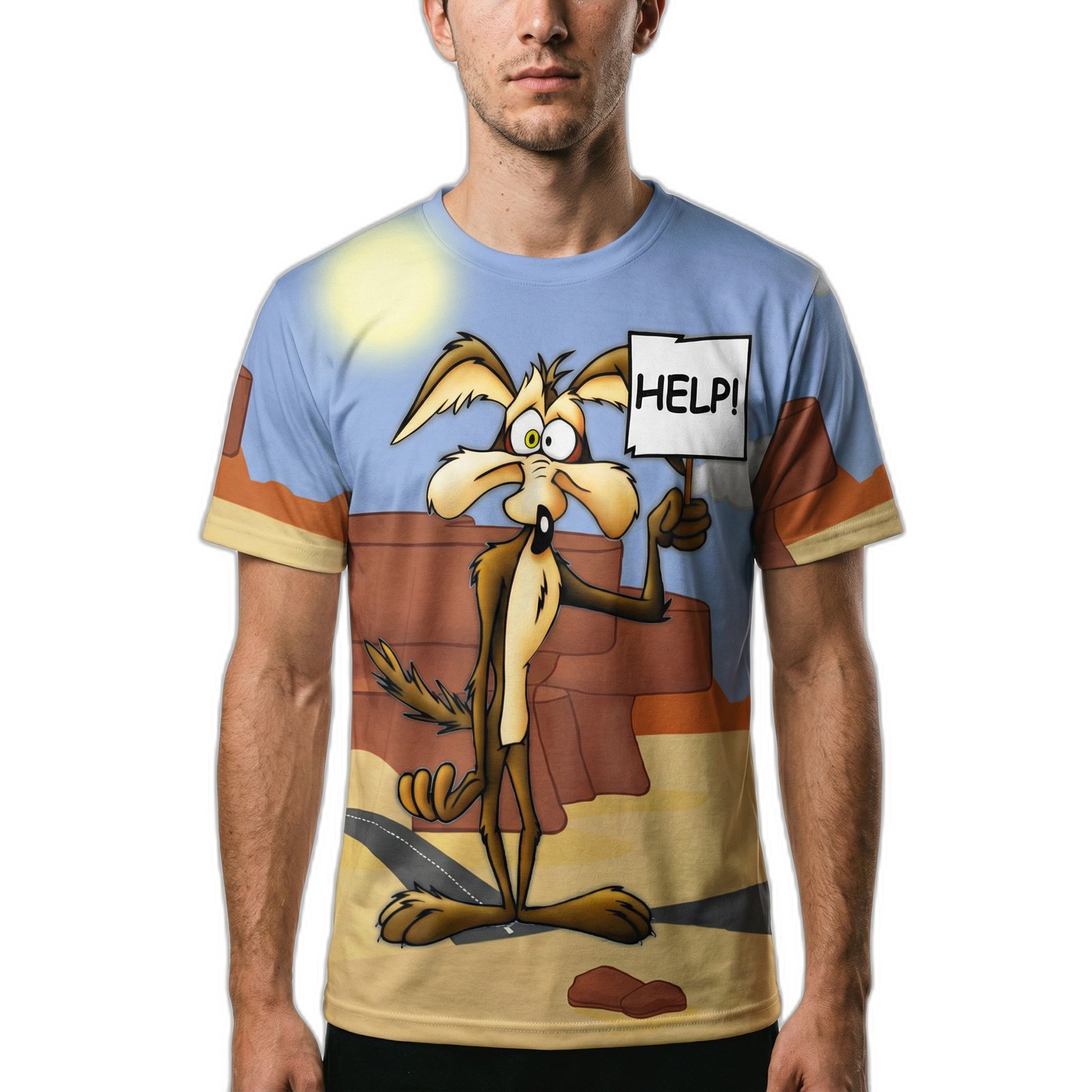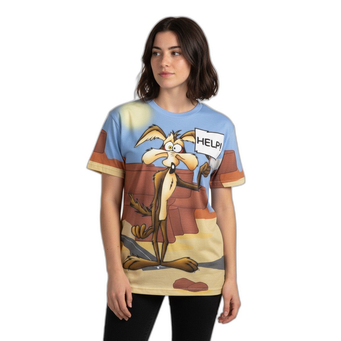 El diseño vibrante y audaz presenta un estampado exclusivo del icónico Coyote, símbolo de astucia y energía. Este gráfico llamativo no solo es una declaración de estilo, sino también una celebración de la cultura pop que destaca en cualquier armario.