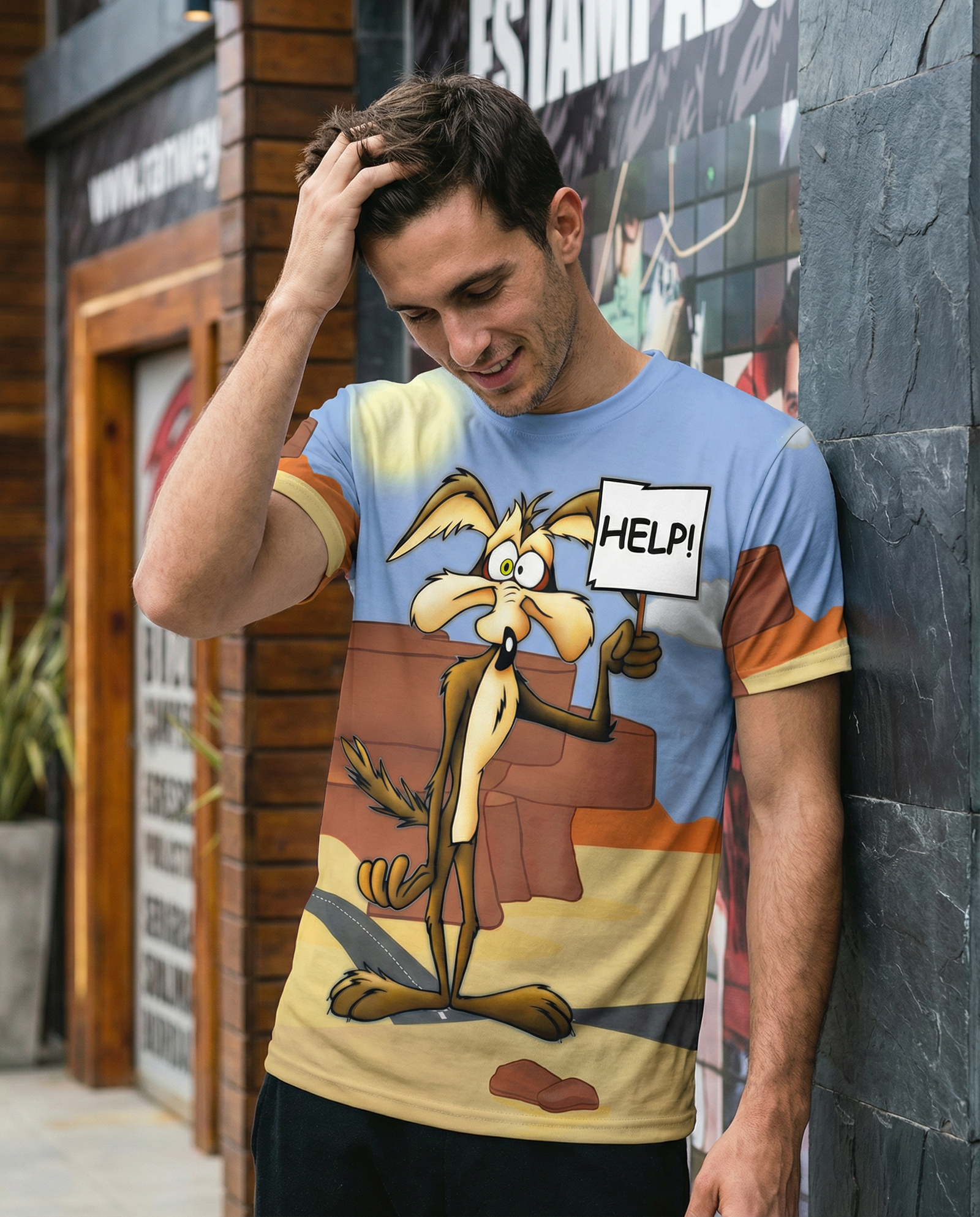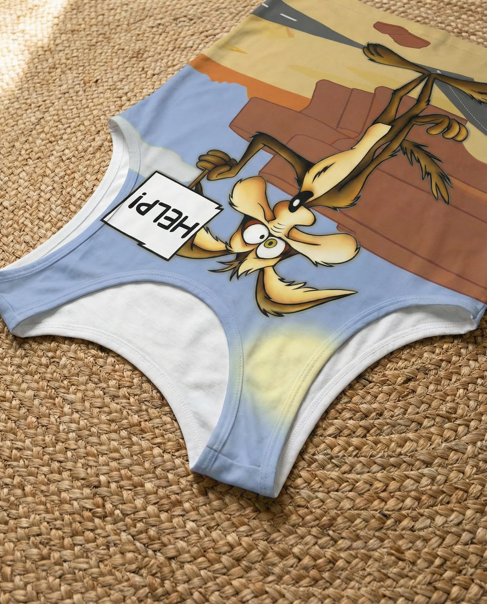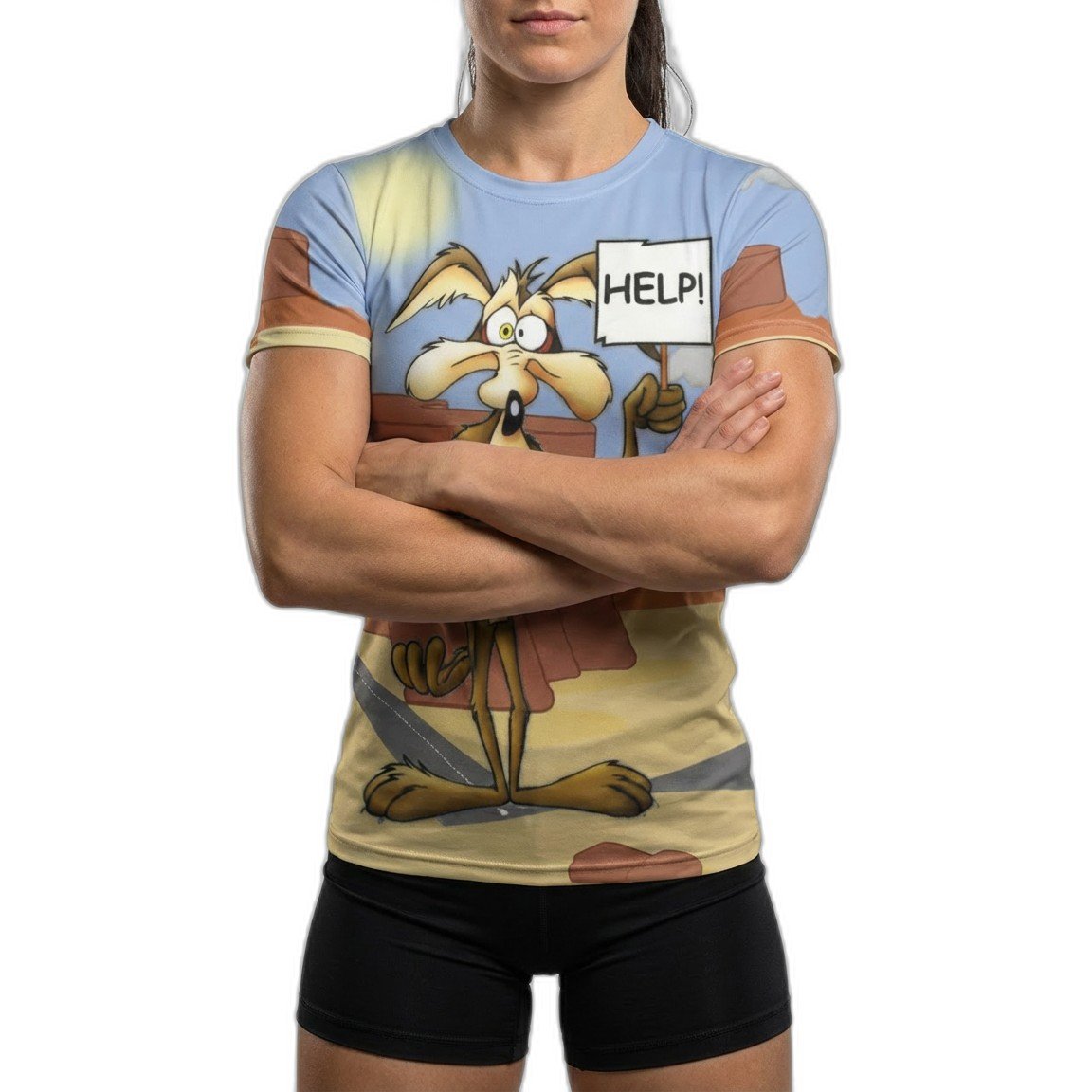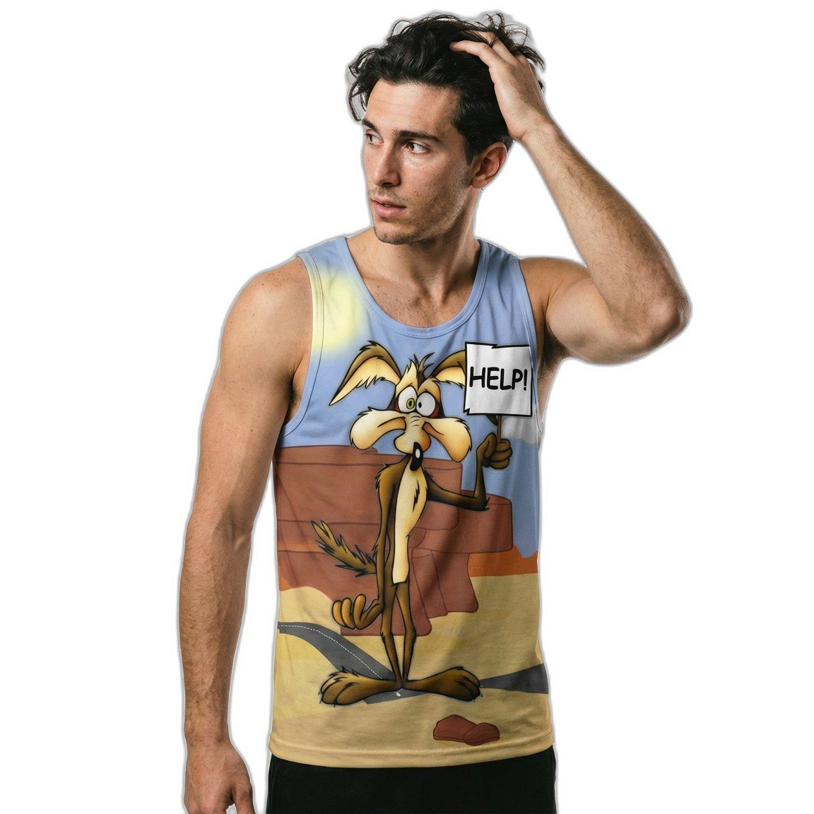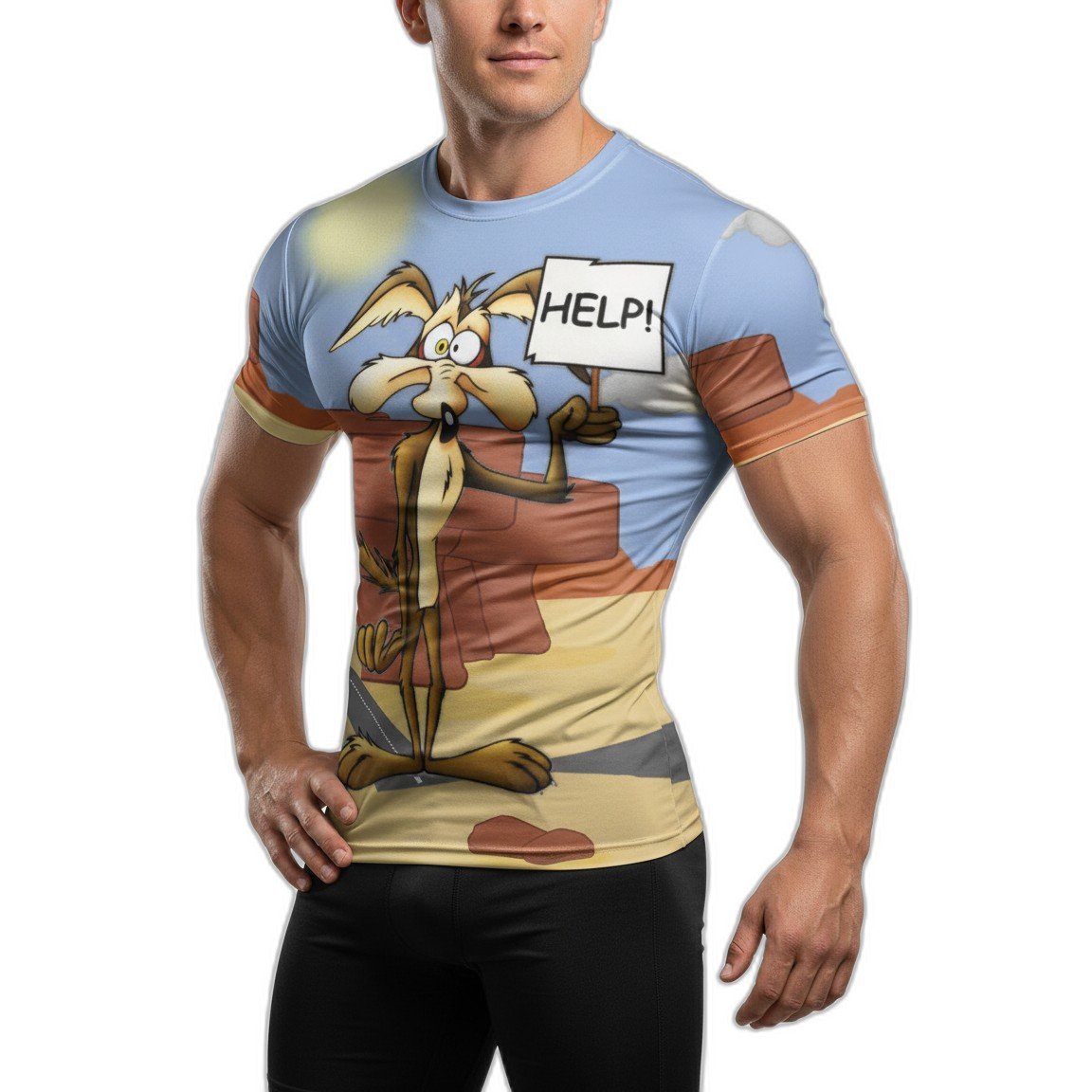 El diseño vibrante y audaz presenta un estampado exclusivo del icónico Coyote, símbolo de astucia y energía. Este gráfico llamativo no solo es una declaración de estilo, sino también una celebración de la cultura pop que destaca en cualquier armario.