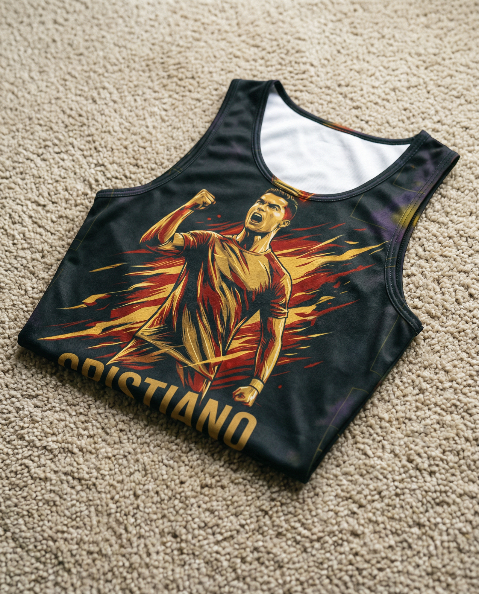 – **Diseño Exclusivo:** El emblemático logo de Cristiano Ronaldo destaca en el pecho, simbolizando la perseverancia y la excelencia, mientras que su corte contemporáneo se adapta a cualquier silueta.