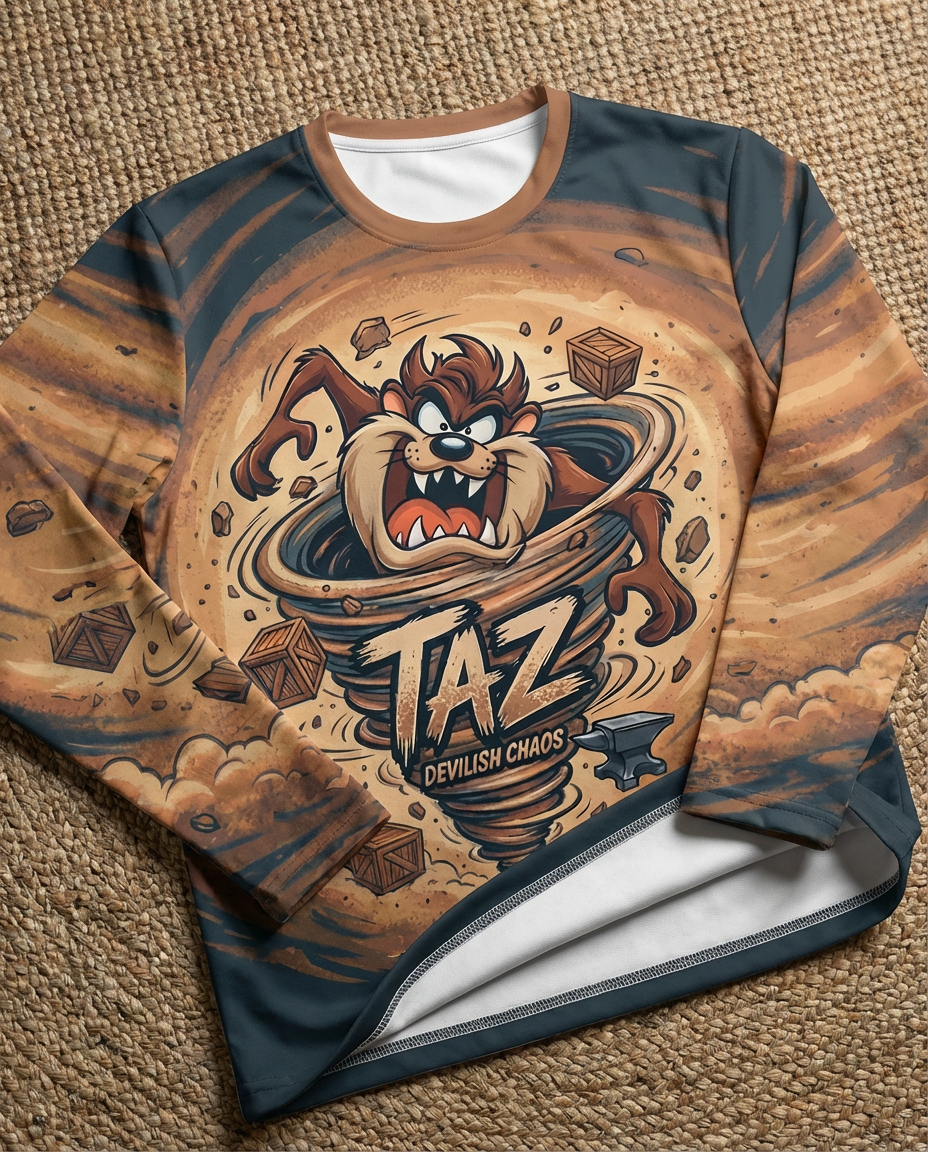 – **Diseño Único:** La ilustración vibrante del Demonio de Tasmania añade un toque de diversión y personalidad a cualquier conjunto, perfecto para los amantes de la cultura pop y los que buscan un outfit divertido.