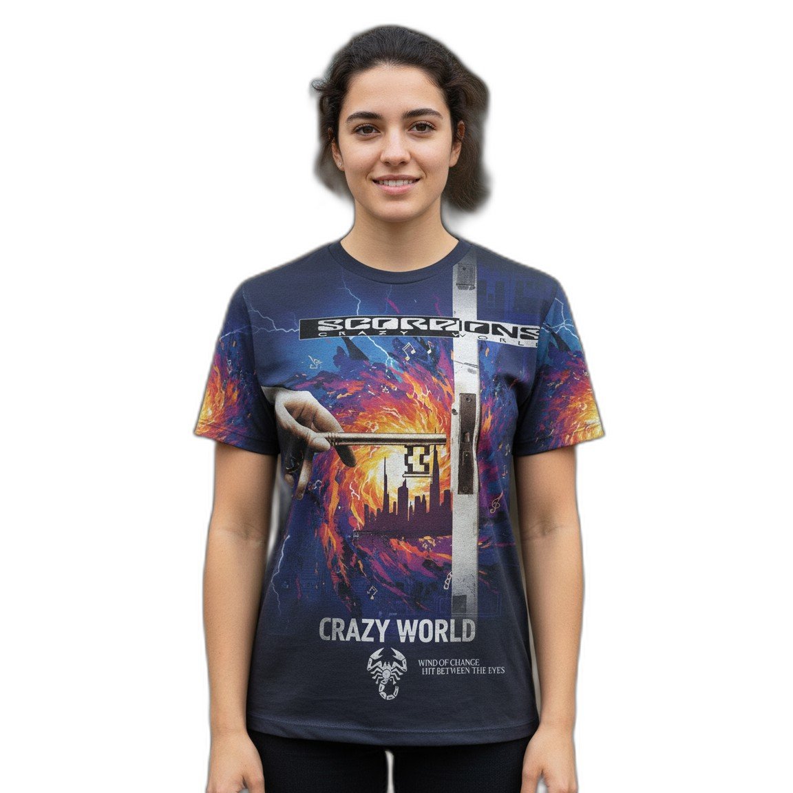 El diseño frontal presenta una gráfica vibrante y llamativa que destaca el emblemático logo de Scorpions, capturando la esencia de la música que ha hecho vibrar generaciones. Su corte moderno y ajustado realza la figura, mientras que las costuras reforzadas aseguran durabilidad, haciendo de esta remera un orgullo lucir una y otra vez.