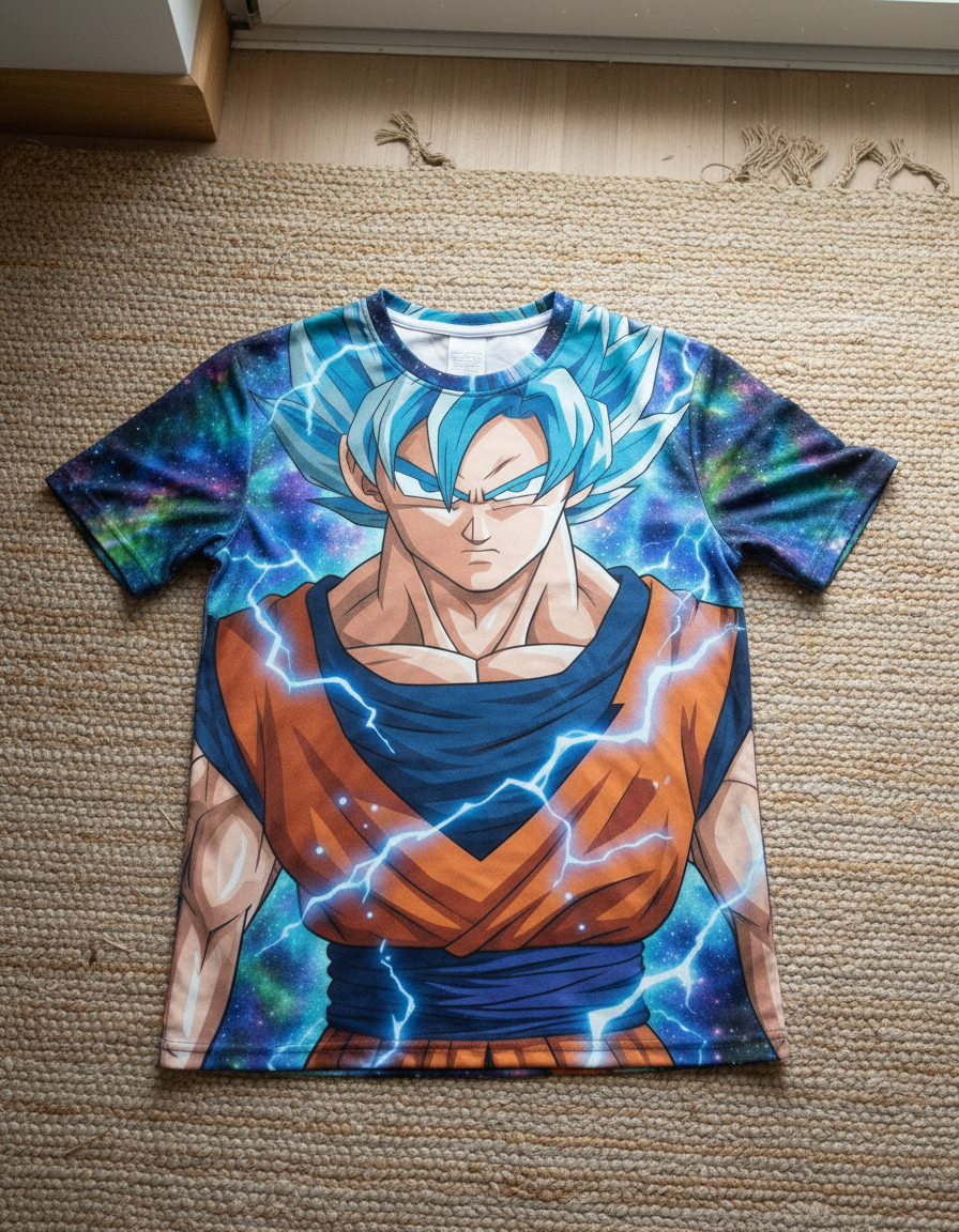 Ideal para llevar a convenciones, disfrutar de un día con amigos o simplemente expresar tu amor por el anime, esta remera se convierte en el complemento imprescindible para cualquier look. ¡No dejes pasar la oportunidad de llevar contigo la fuerza de un Saiyajin! Añade esta pieza icónica a tu colección y deja que el espíritu de Goku te acompañe en cada aventura. ¡Haz tu pedido ahora y demuestra tu pasión por Dragon Ball Super!