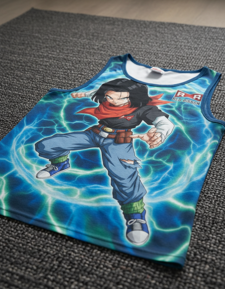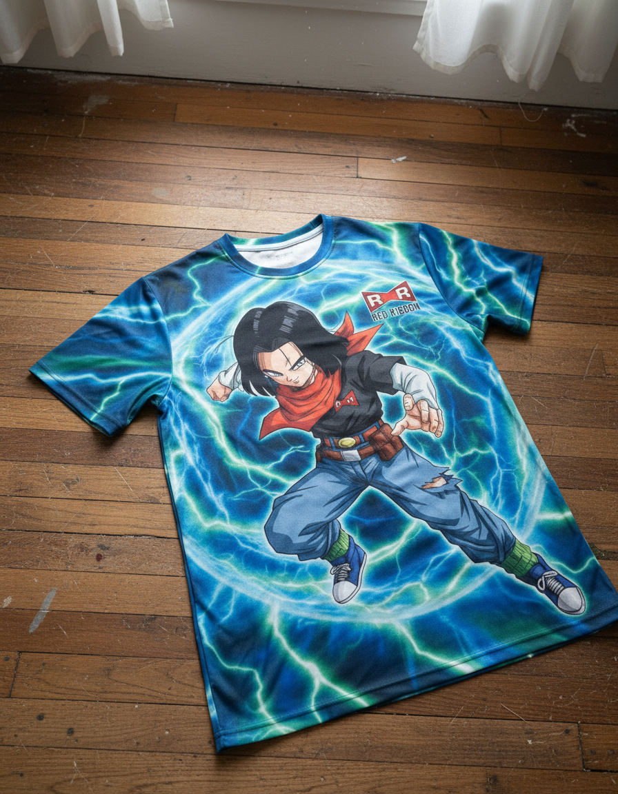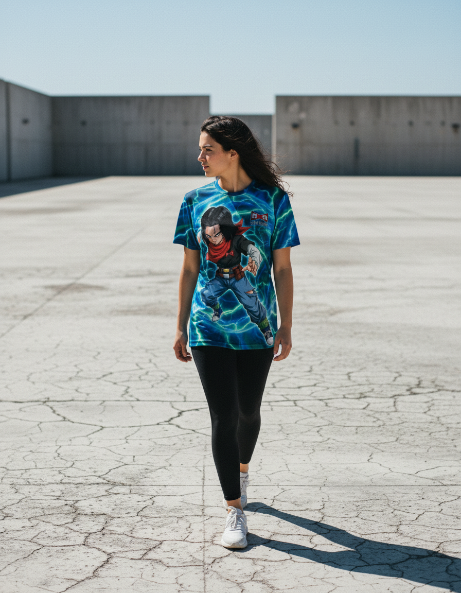 Con un diseño vibrante y fiel al icónico personaje, esta remera destaca por su estampado detallado que captura la esencia de Androide 17 en acción. Ideal para los verdaderos fanáticos de la serie, combina a la perfección con tus jeans favoritos o una falda casual para un estilo urbano y desenfadado.