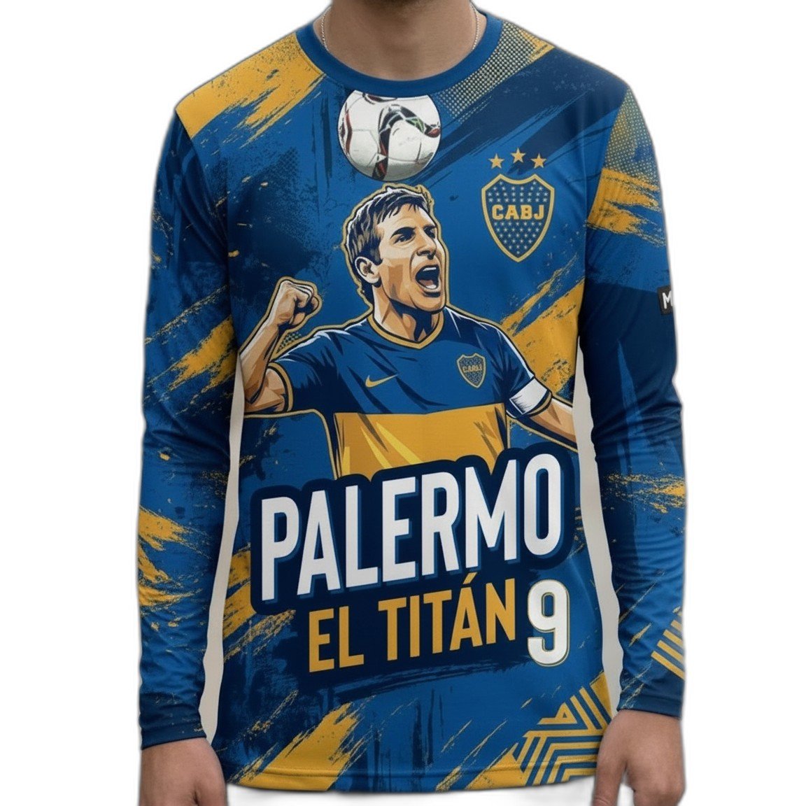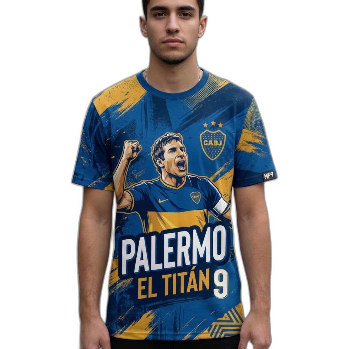 – **Diseño Exclusivo:** La remera cuenta con un diseño moderno y atractivo que incorpora el famoso número 9 de Martín Palermo, el legendario goleador de Boca Juniors. Los detalles en tonos dorados evocan la grandeza y la gloria del club.