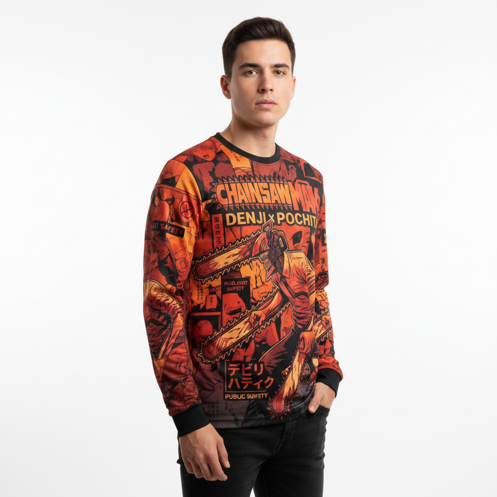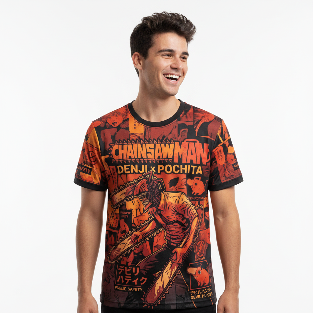 La motosierra más icónica del anime, ahora en tu remera. Chainsaw Man Denji Pochita en full print sublimado, con detalles que solo un verdadero fan va a reconocer. Tela Dri Fit premium, diseño de punta a punta. Tu estilo, tus reglas.