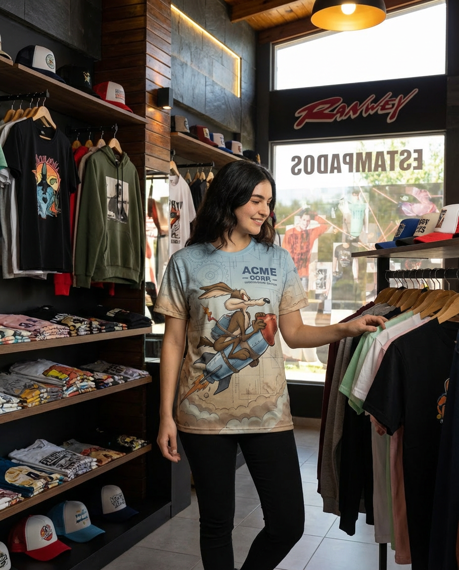 – **Diseño Único**: Con un estampado vibrante que combina la icónica imagen del Coyote y el Correcaminos en un juego audaz de colores, esta remera captura la esencia del clásico dúo de la animación. Las ilustraciones con detalles llamativos y efectos gráficos te harán destacar en cualquier multitud.
