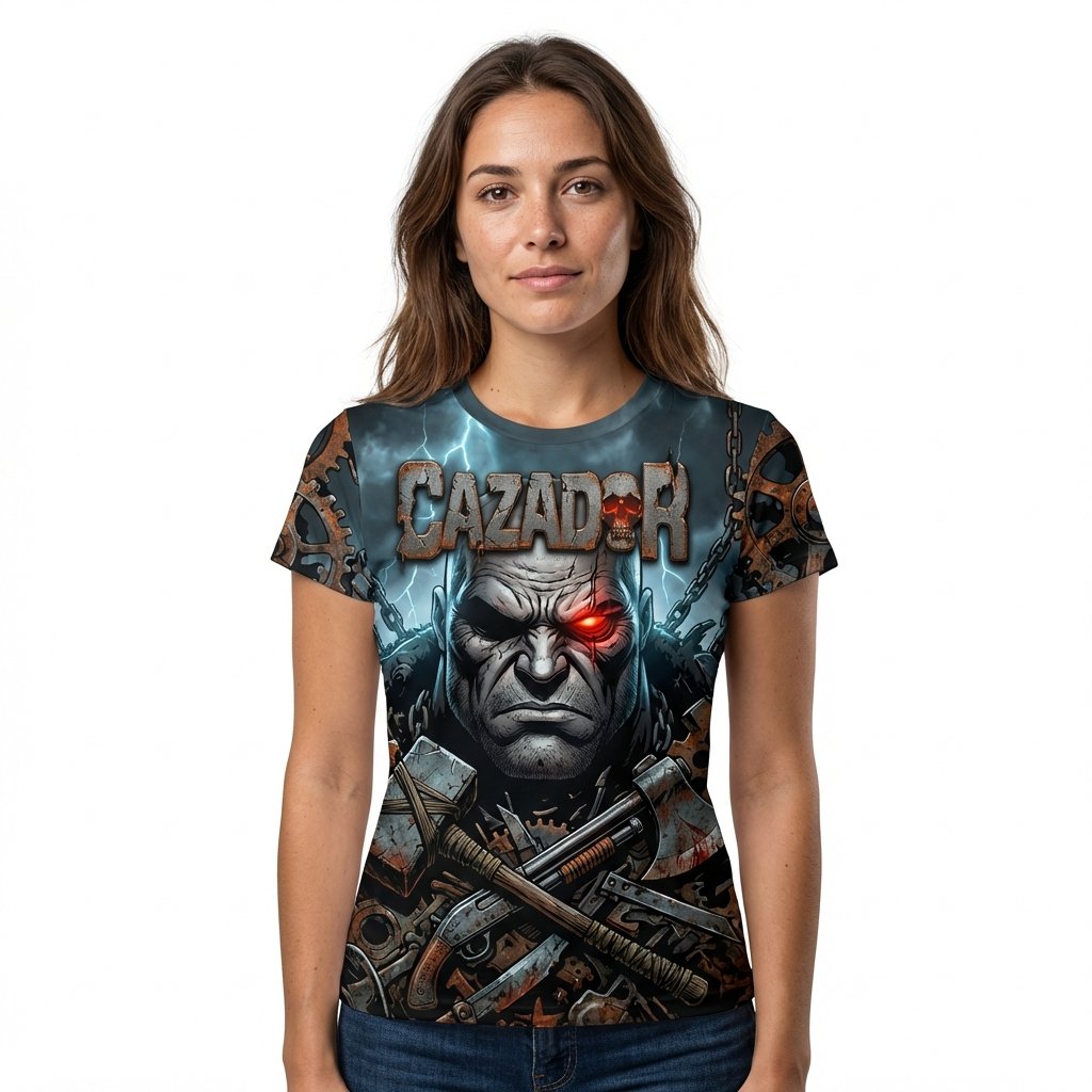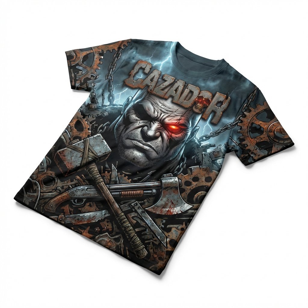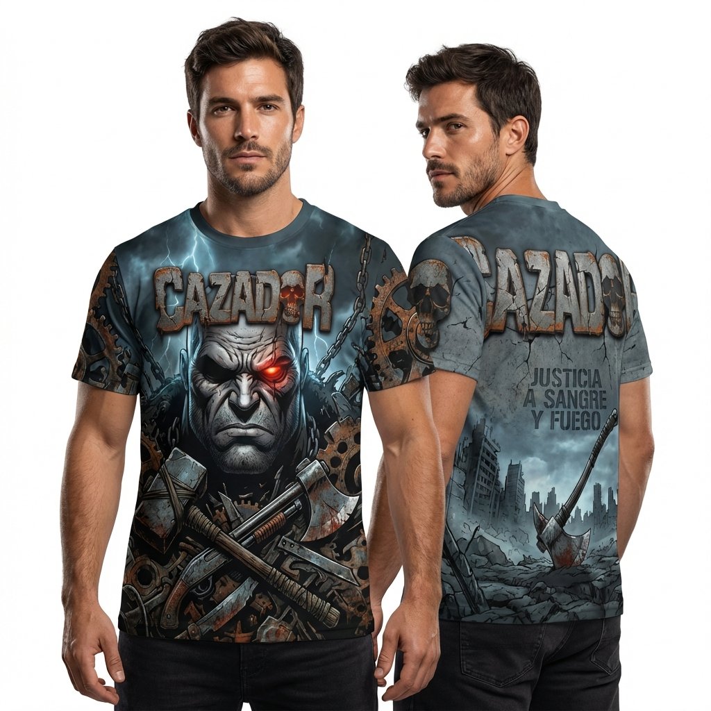 Segunda edición especial de El Cazador: “Justicia a Sangre y Fuego”. Un diseño industrial y oscuro con engranajes, cadenas y el icónico antihéroe con su ojo cyber-red.