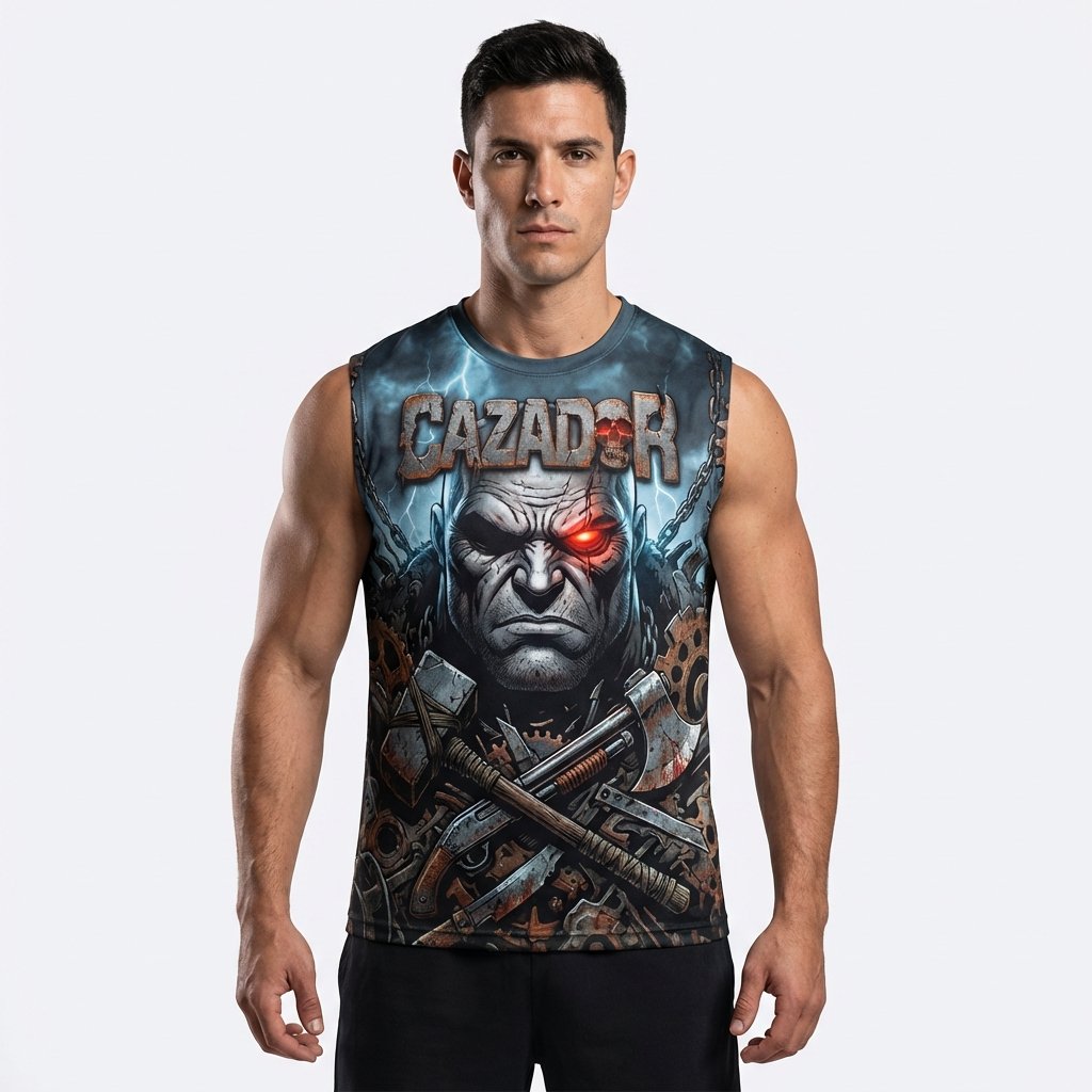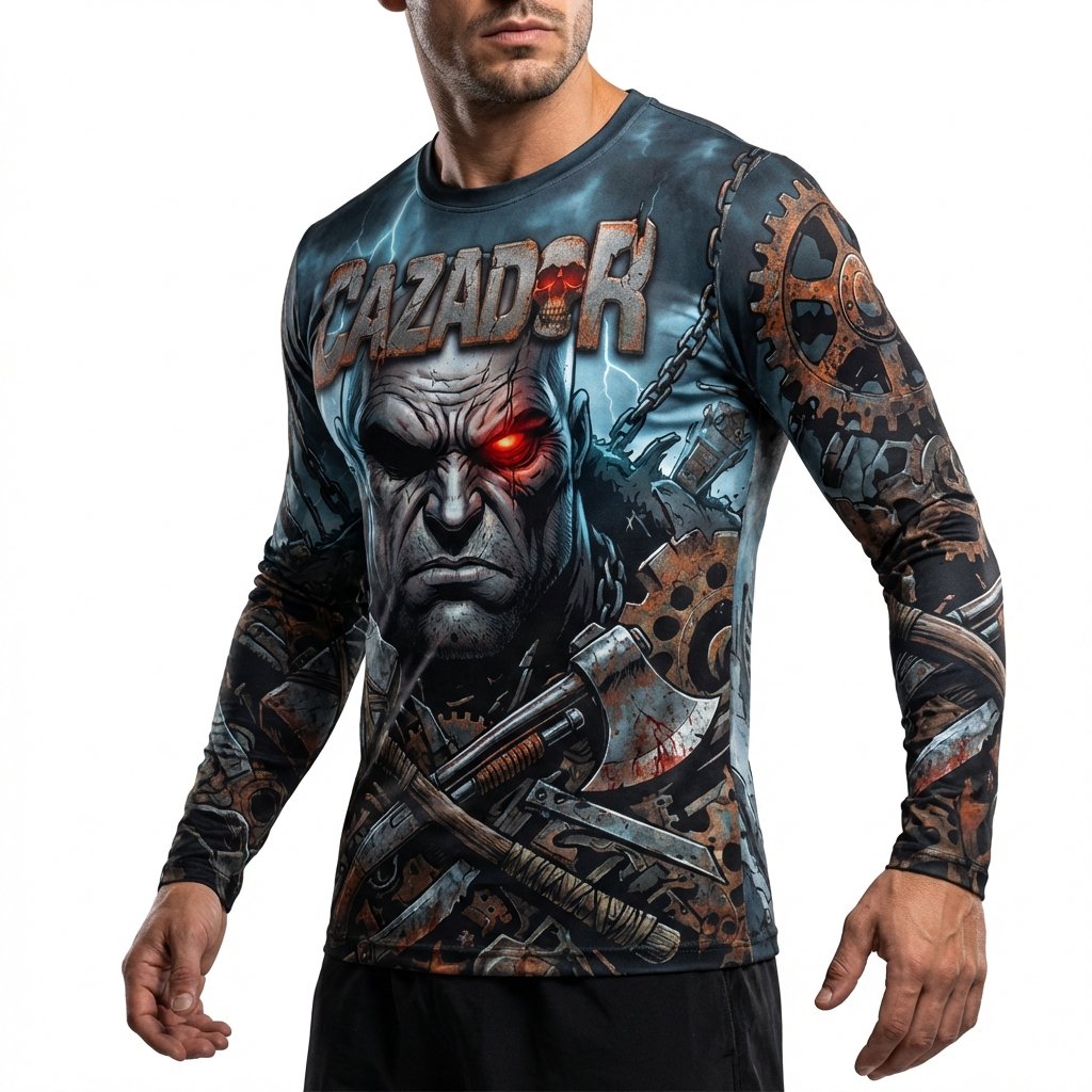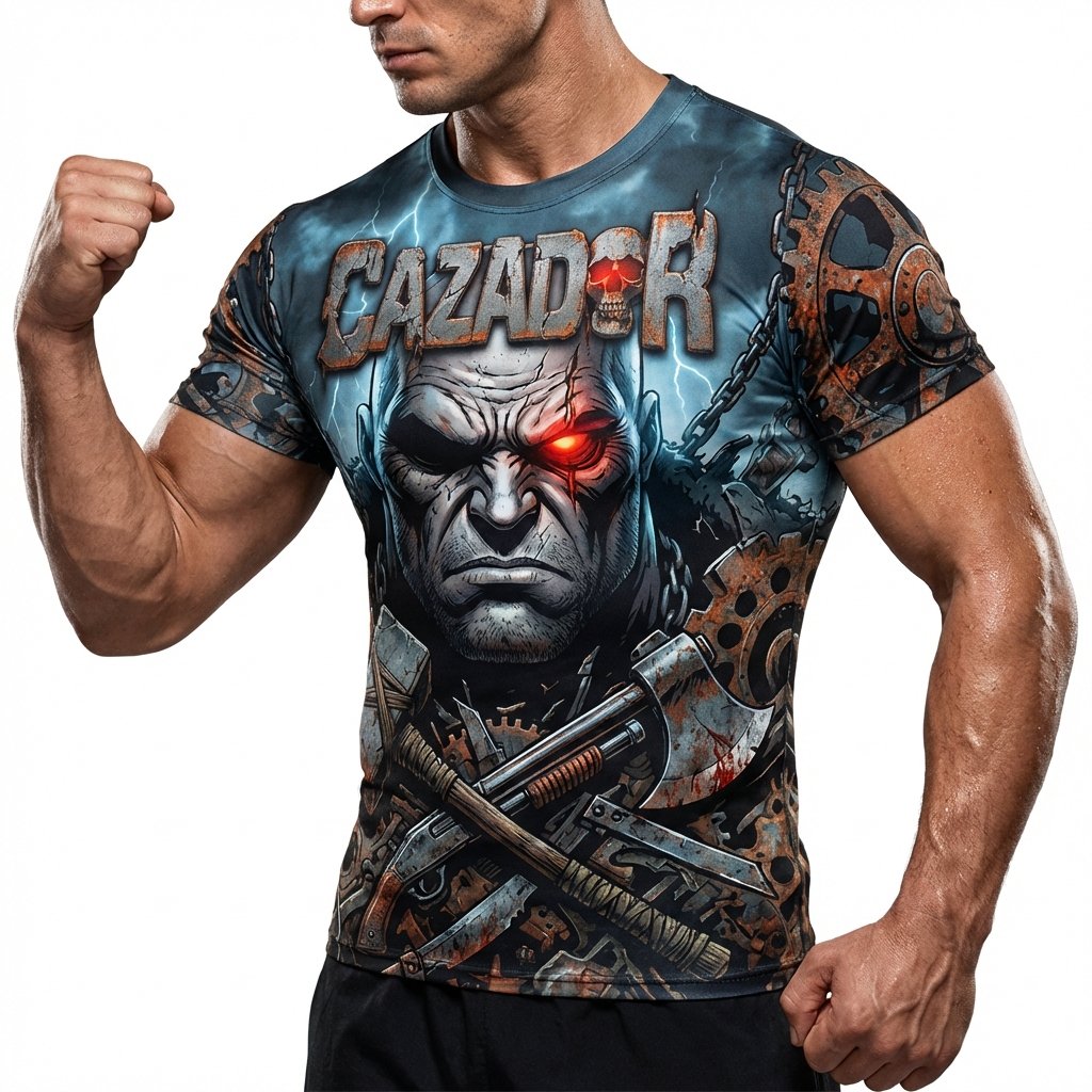 Segunda edición especial de El Cazador: “Justicia a Sangre y Fuego”. Un diseño industrial y oscuro con engranajes, cadenas y el icónico antihéroe con su ojo cyber-red.