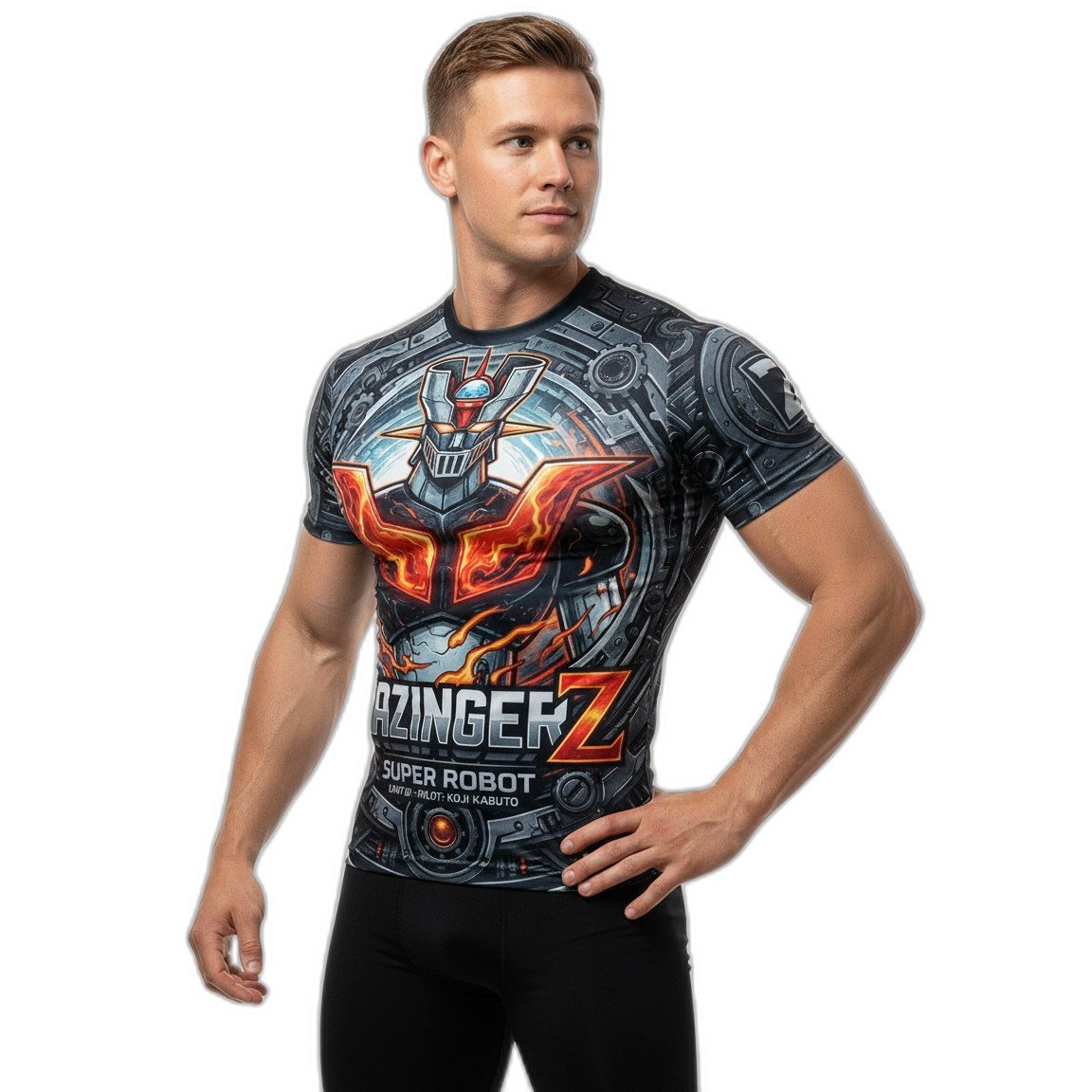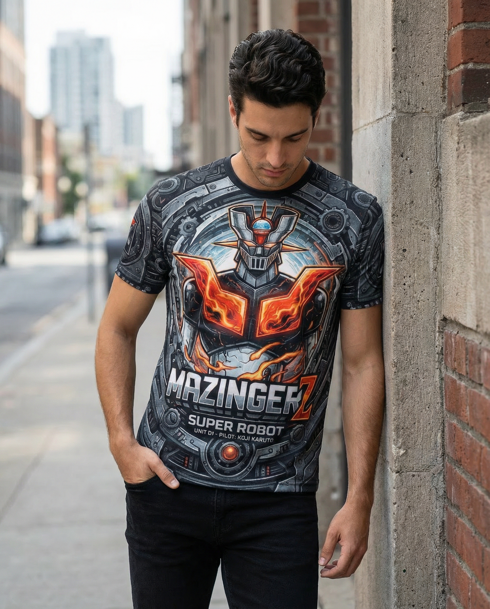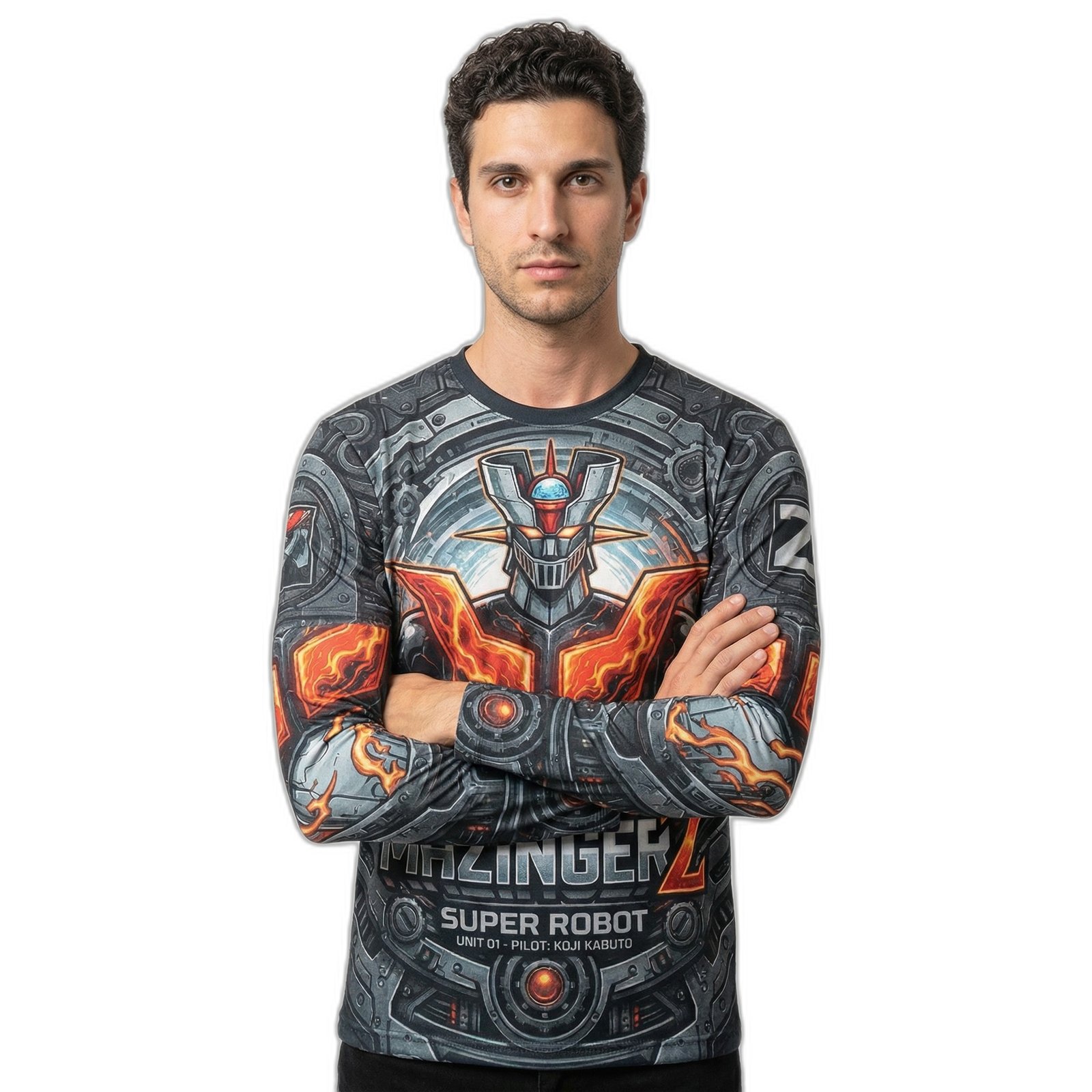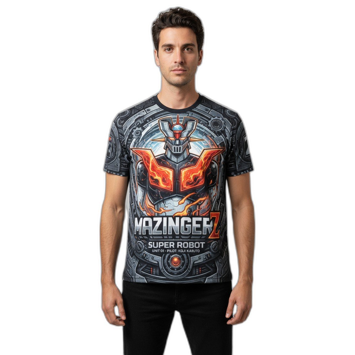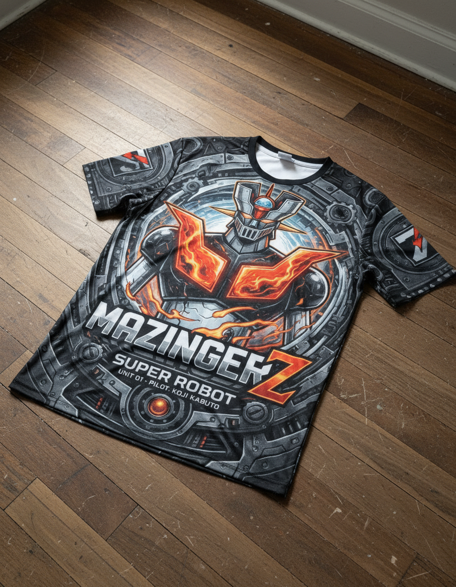 – **Diseño Gráfico Impactante:** Presenta un emblemático gráfico del Mazinger Z en un vibrante estampado que evoca la fuerza y el poder del legendario robot, haciendo que cada mirada se fije en ti.