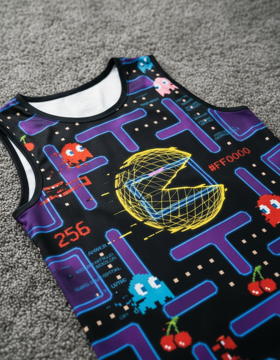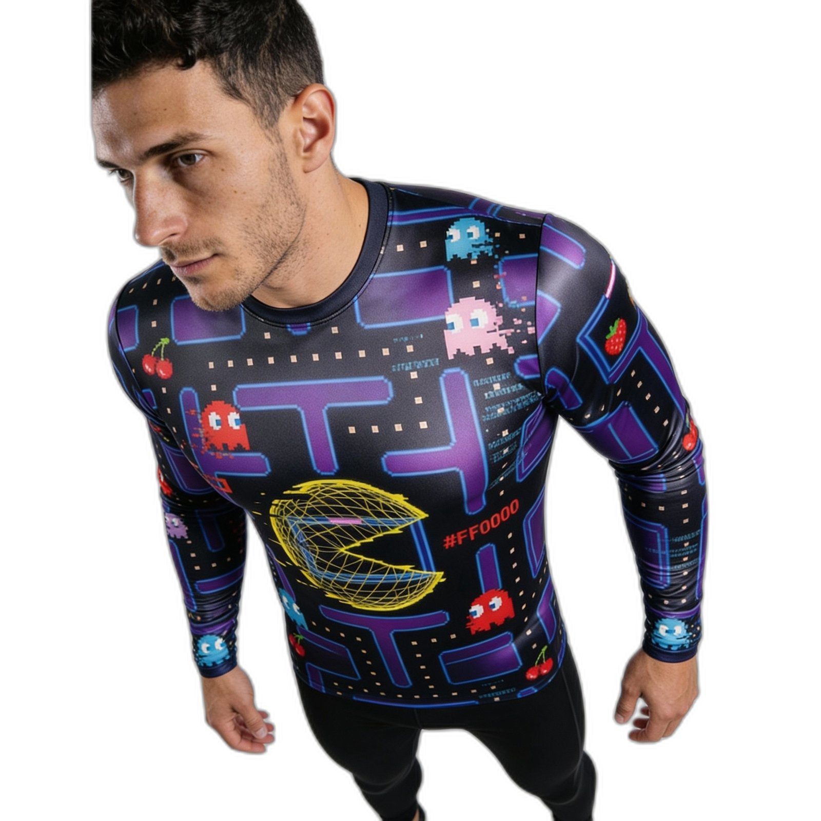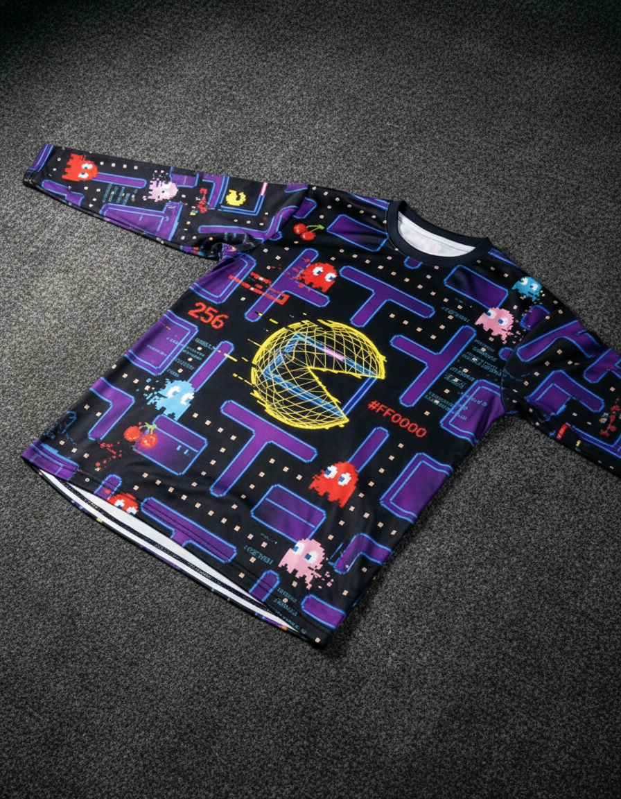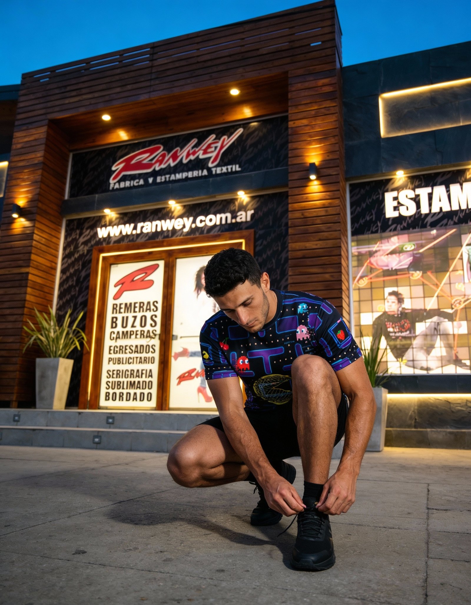 – **Diseño icónico:** La remera presenta un vibrante estampado de los legendarios fantasmas de Pac-man —Blinky, Pinky, Inky y Clyde— en un colorido diseño que captura la esencia del juego clásico.