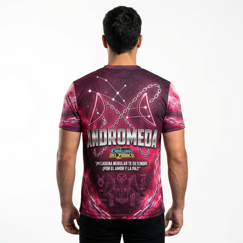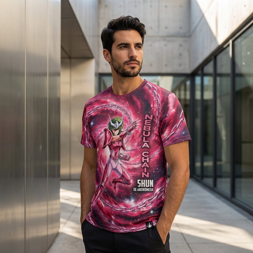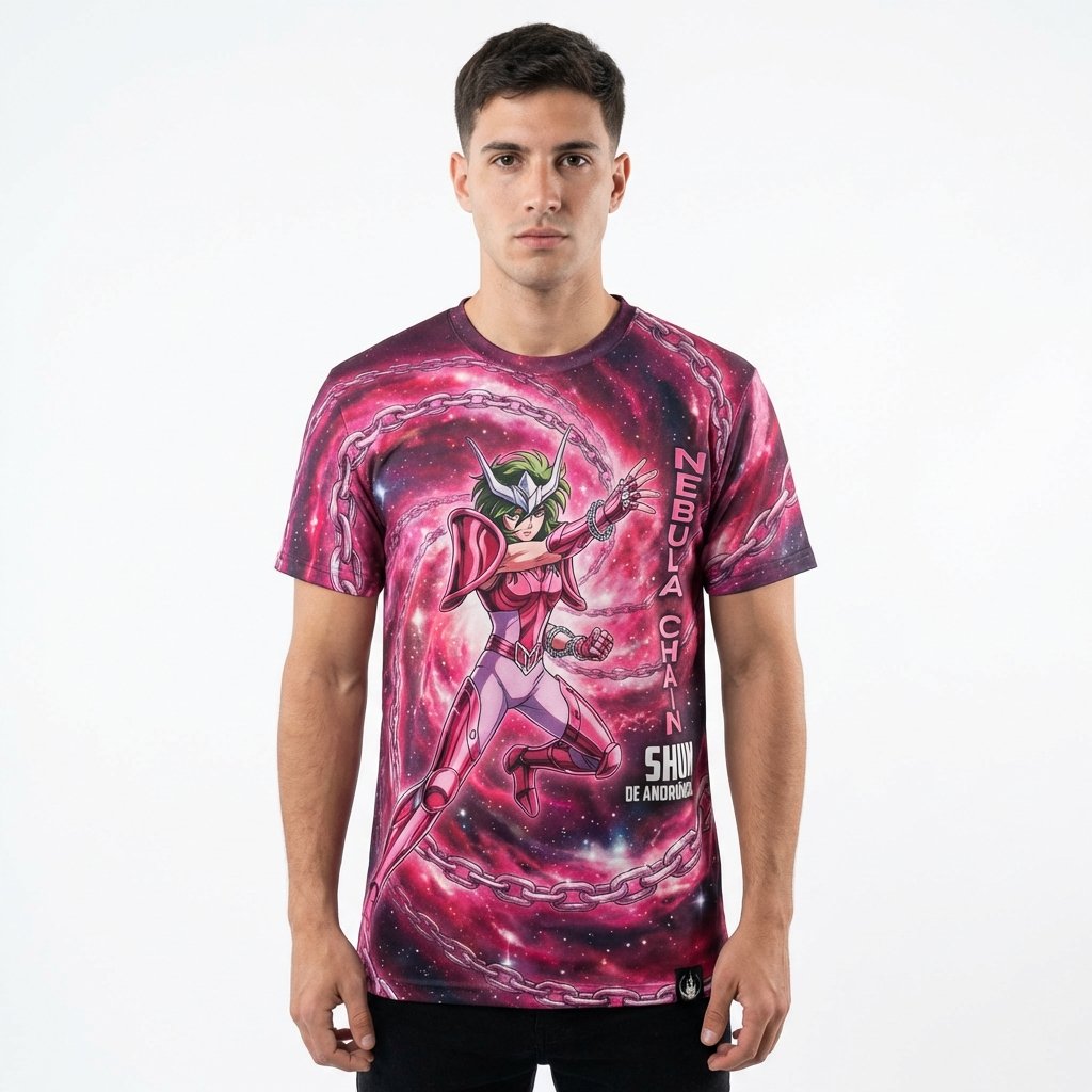 Remera con diseño exclusivo de Saint Seiya Andrómeda Shun. Calidad premium con técnica de sublimación total.