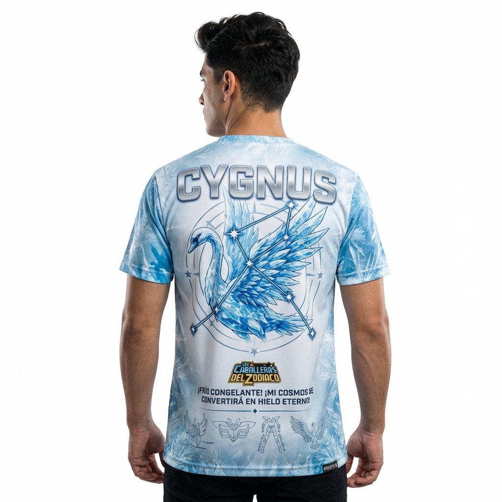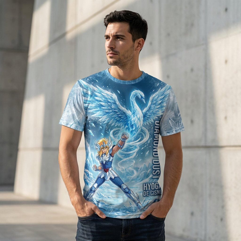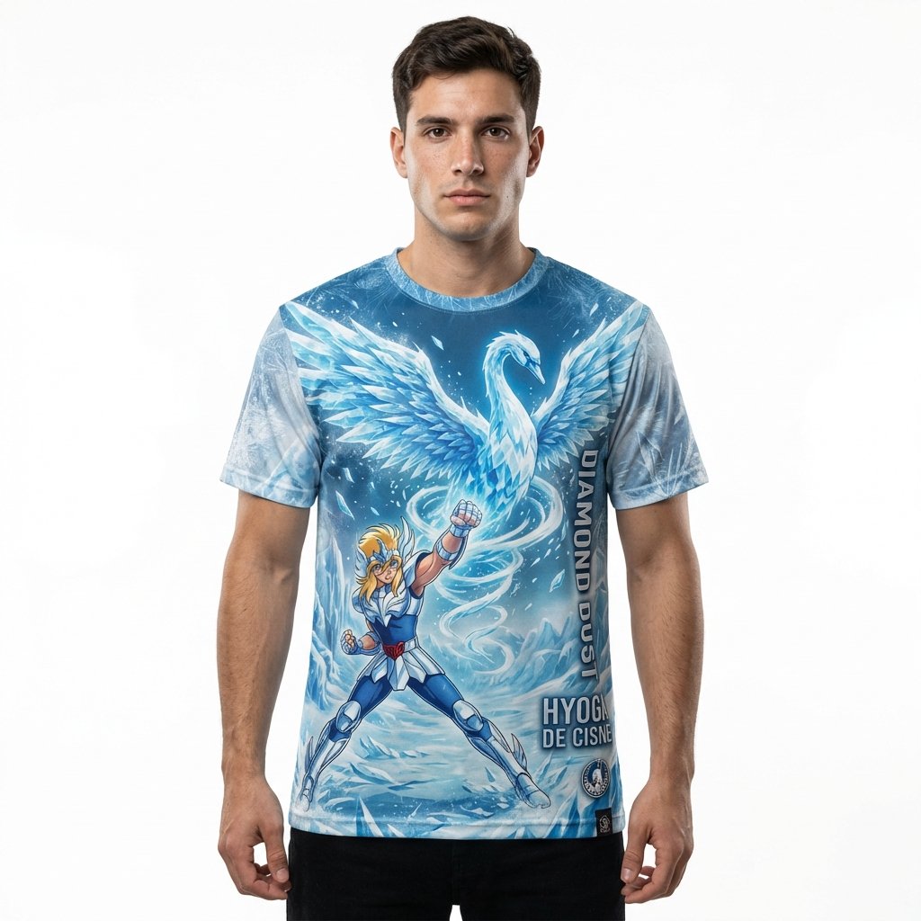 Remera con diseño exclusivo de Saint Seiya Cisne Hyoga. Calidad premium con técnica de sublimación total.