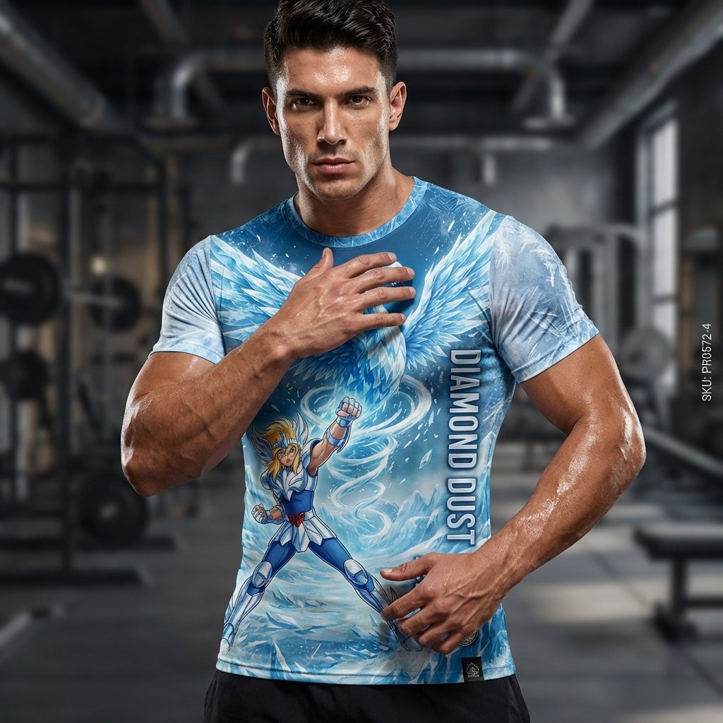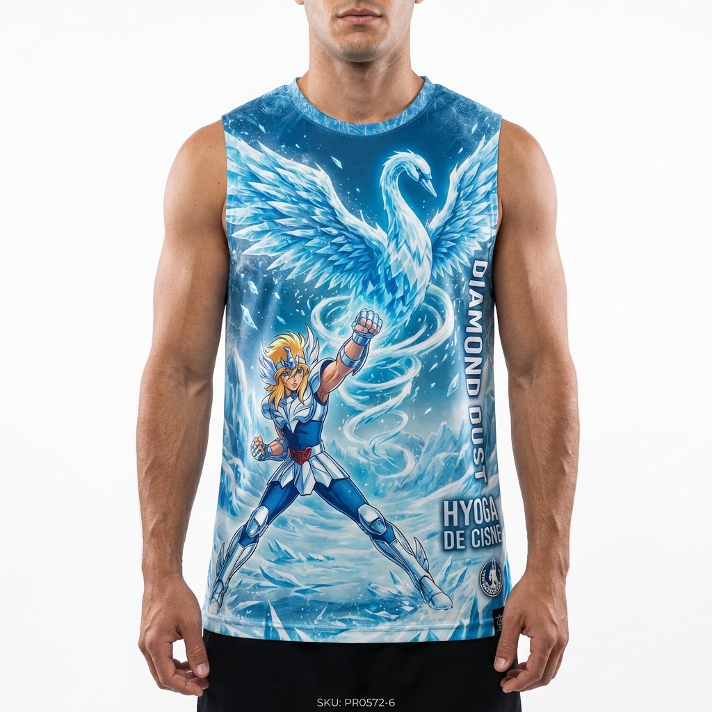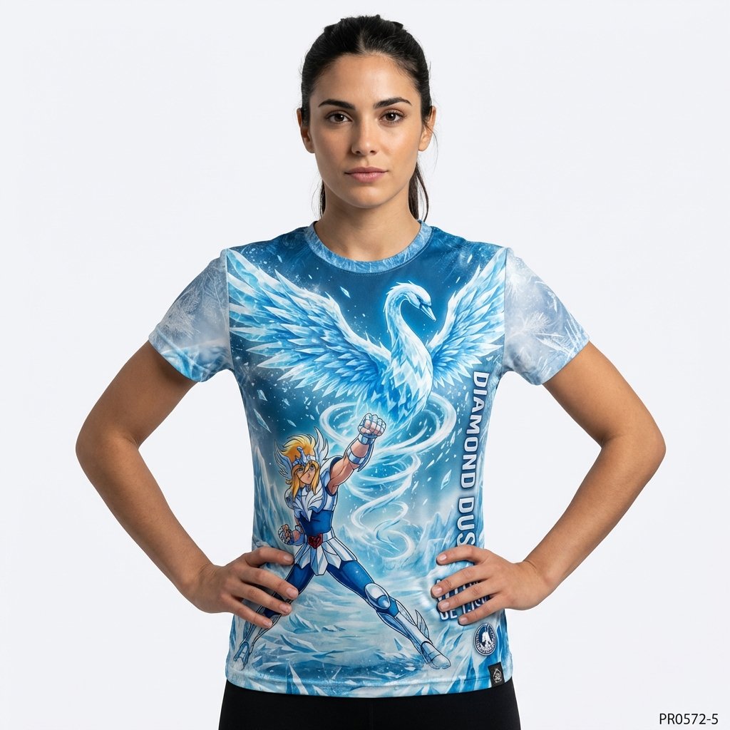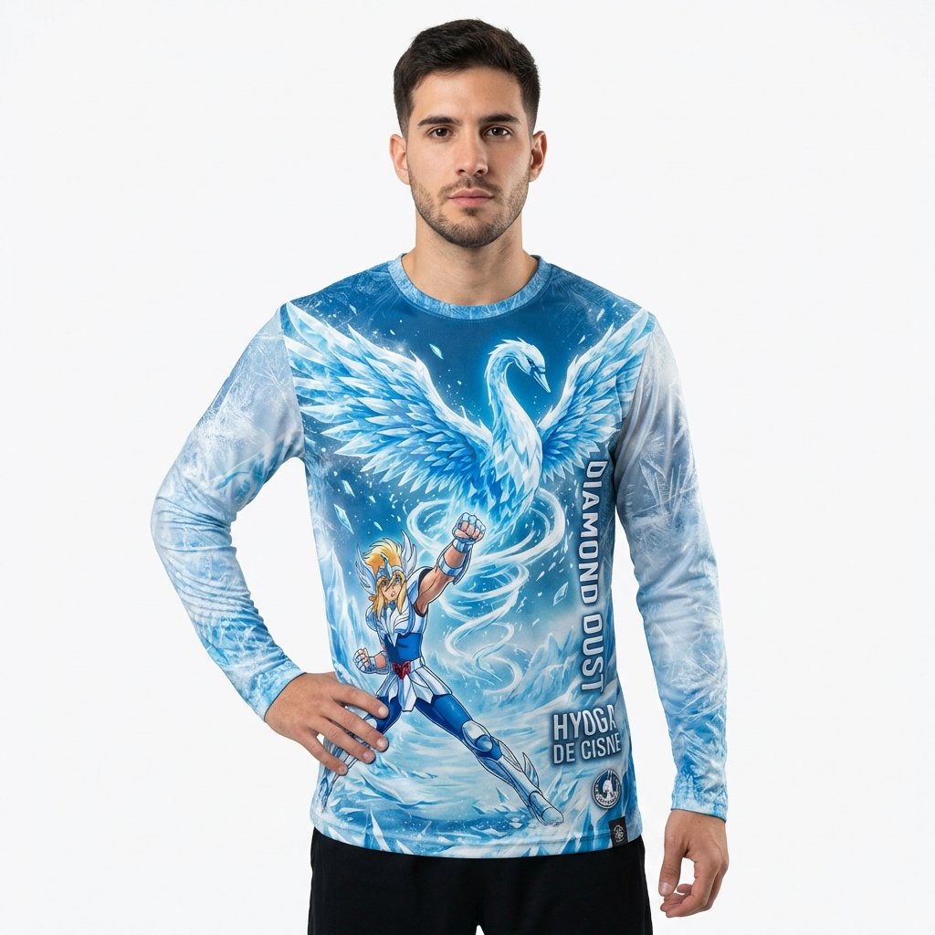 Remera con diseño exclusivo de Saint Seiya Cisne Hyoga. Calidad premium con técnica de sublimación total.