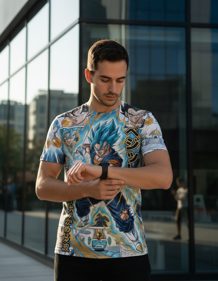 – **Diseño vibrante y duradero:** La impresionante gráfica de Vegito en estampado digital se mantiene intacta lavado tras lavado, garantizando que colores y detalles sigan brillando como el primer día.