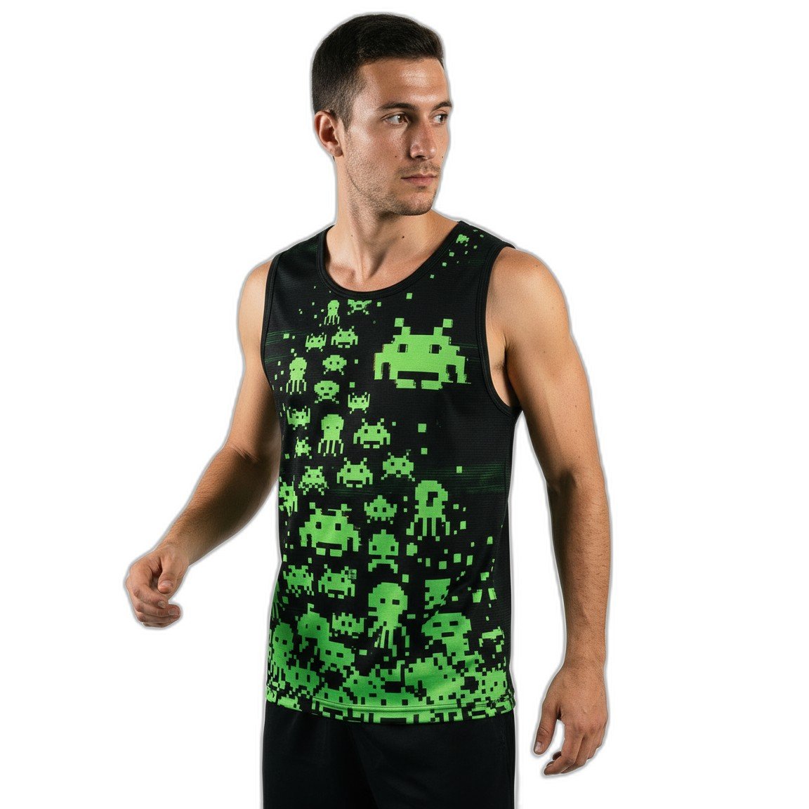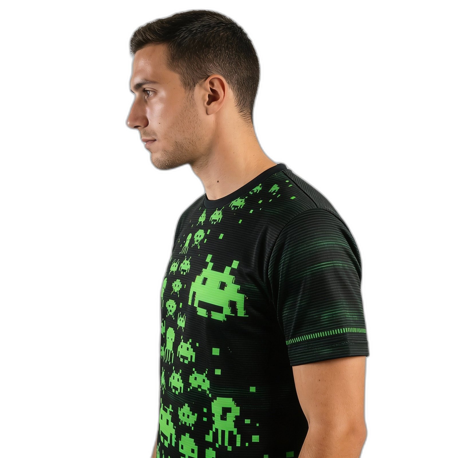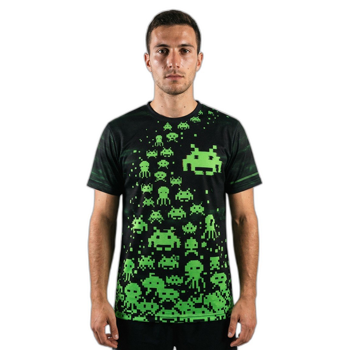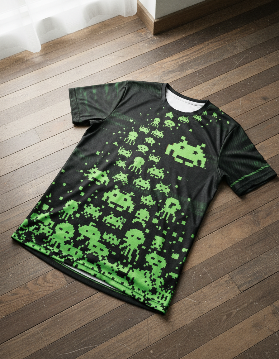 – **Estilo Único**: Con un diseño gráfico vibrante que presenta los emblemáticos alienígenas pixelados del juego Space Invaders, esta remera cuenta con una impresión de alta calidad que no se desvanecerá con el tiempo.