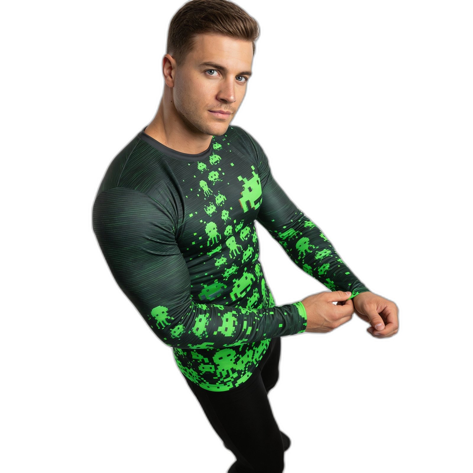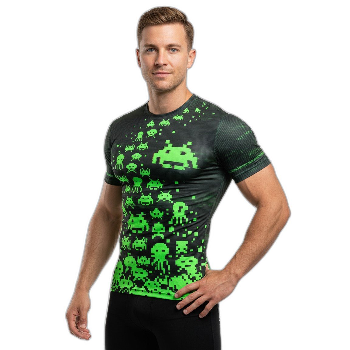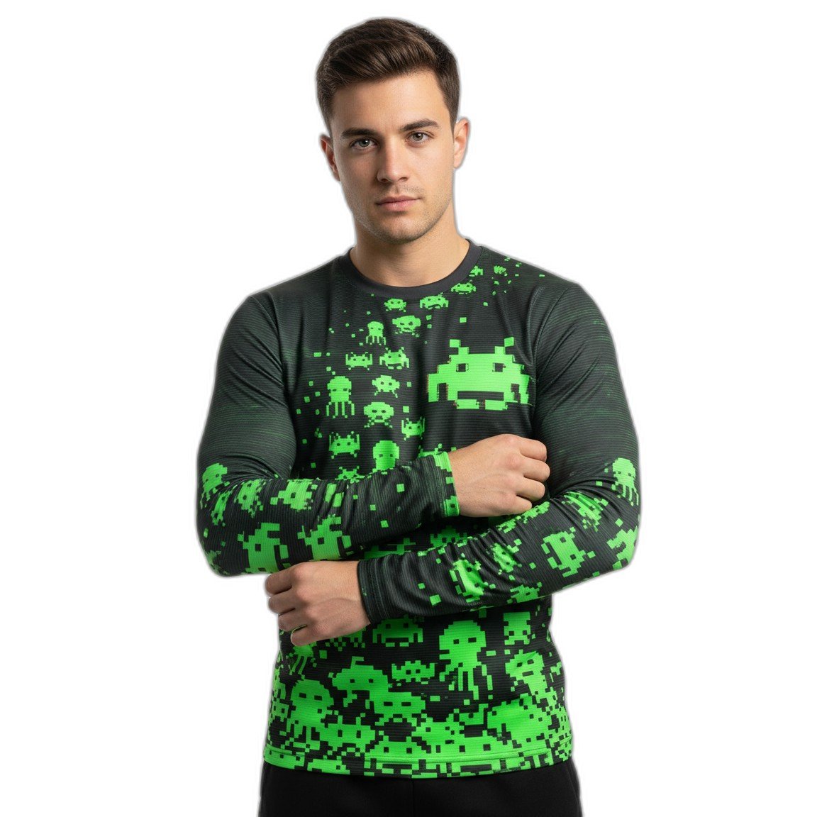 – **Estilo Único**: Con un diseño gráfico vibrante que presenta los emblemáticos alienígenas pixelados del juego Space Invaders, esta remera cuenta con una impresión de alta calidad que no se desvanecerá con el tiempo.