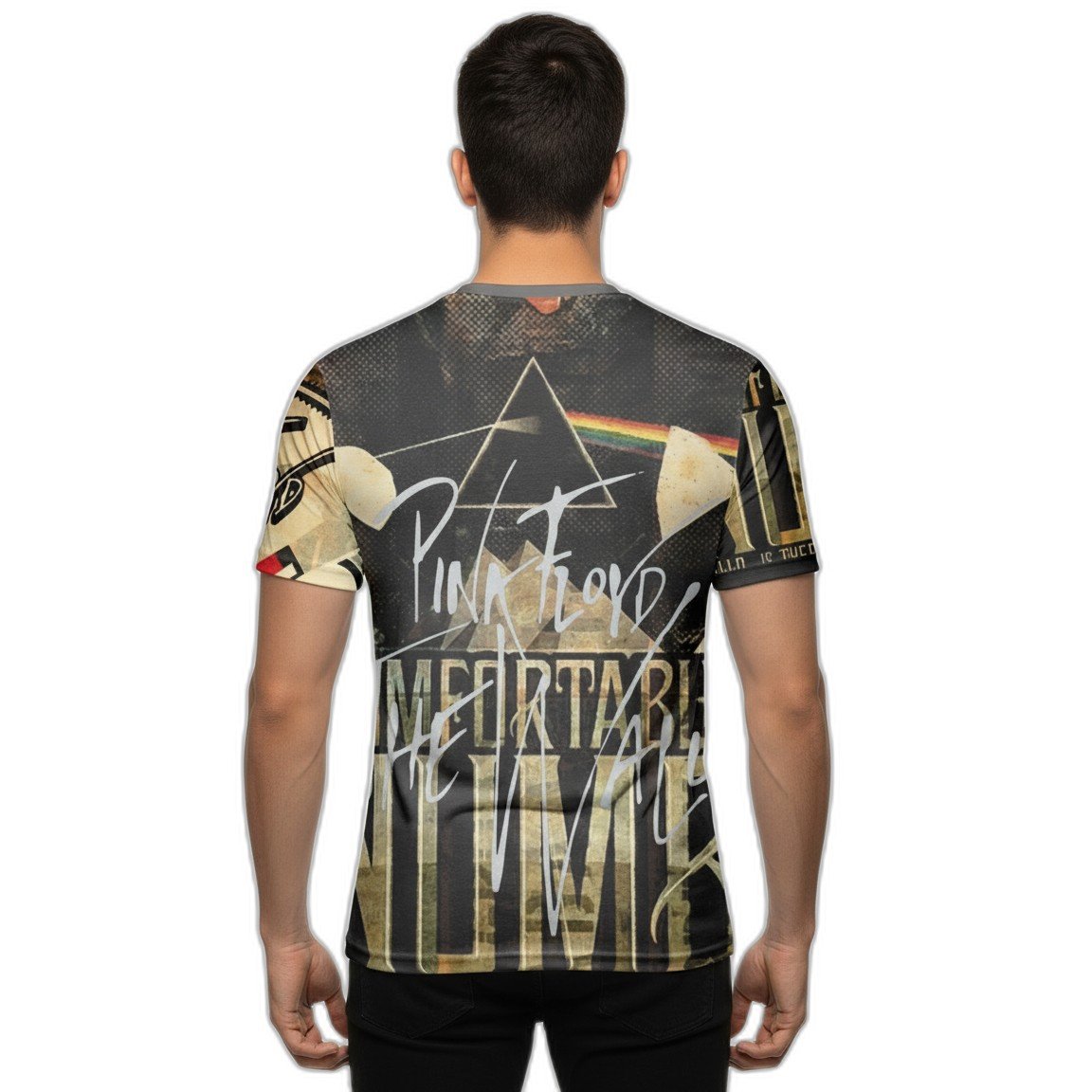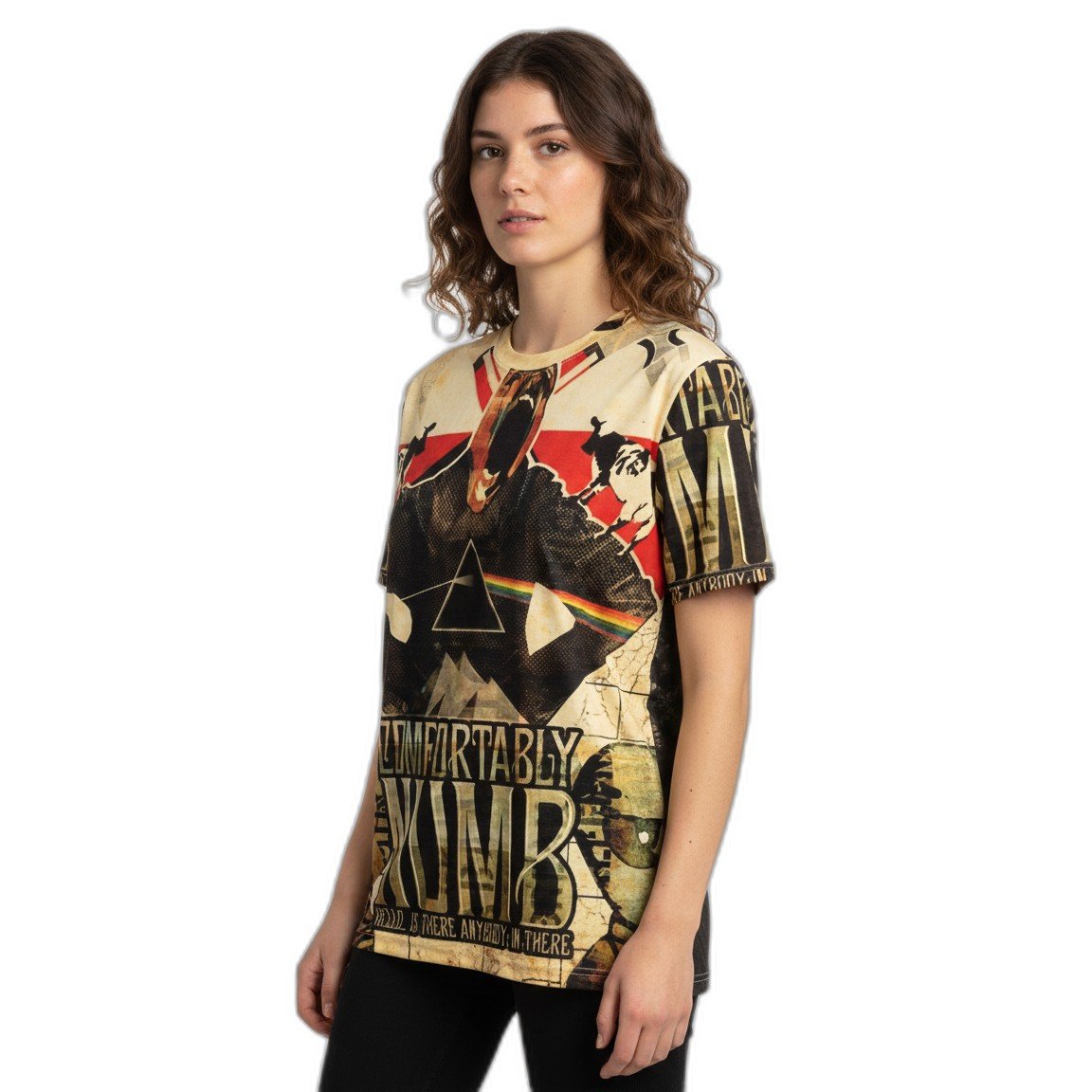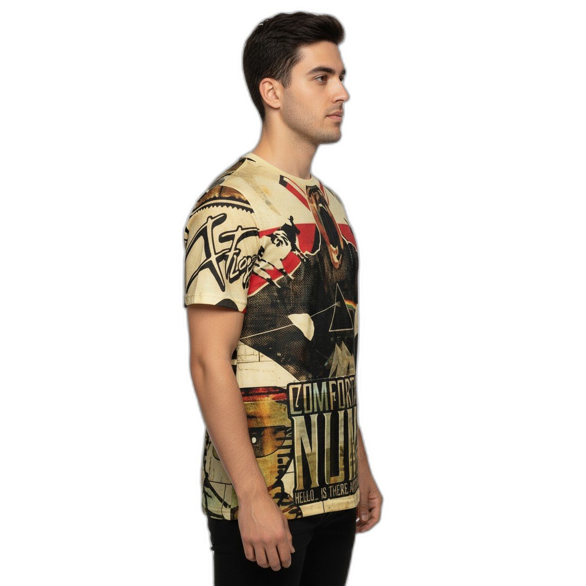 Impresionada en un vibrante full print, la remera presenta icónicas imágenes y elementos gráficos que evocan la profundidad y la atmósfera de una de las canciones más emblemáticas de Pink Floyd. Confeccionada con materiales suaves y transpirables, garantiza un fit perfecto para que te muevas con libertad mientras disfrutas de tus actividades diarias o asistes a conciertos.