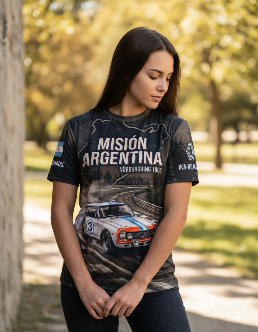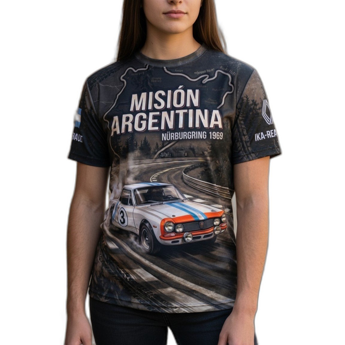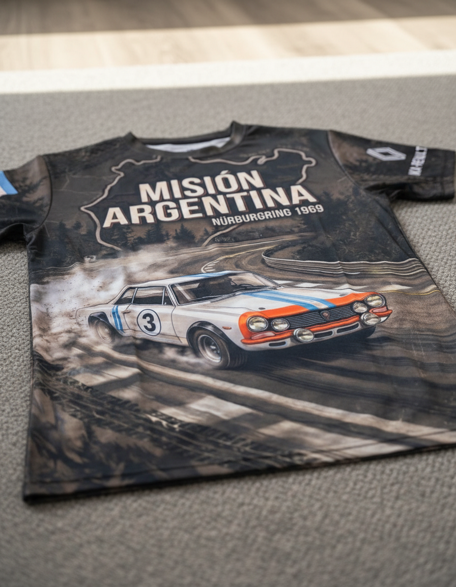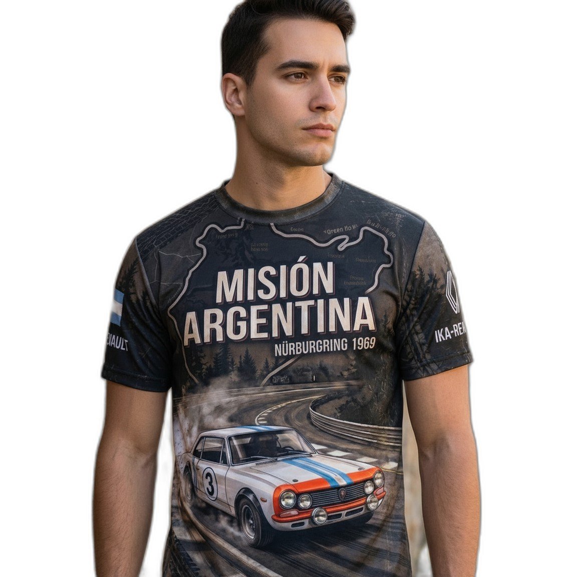 El gráfico distintivo, que captura la esencia del Renault Torino en el célebre circuito de Nürburgring, añade un toque de nostalgia y exclusividad a tu atuendo. Disponible en una elegante paleta de colores, esta remera se adapta perfectamente a cualquier estilo, permitiéndote expresar tu amor por la velocidad y la historia del automovilismo con cada uso.
