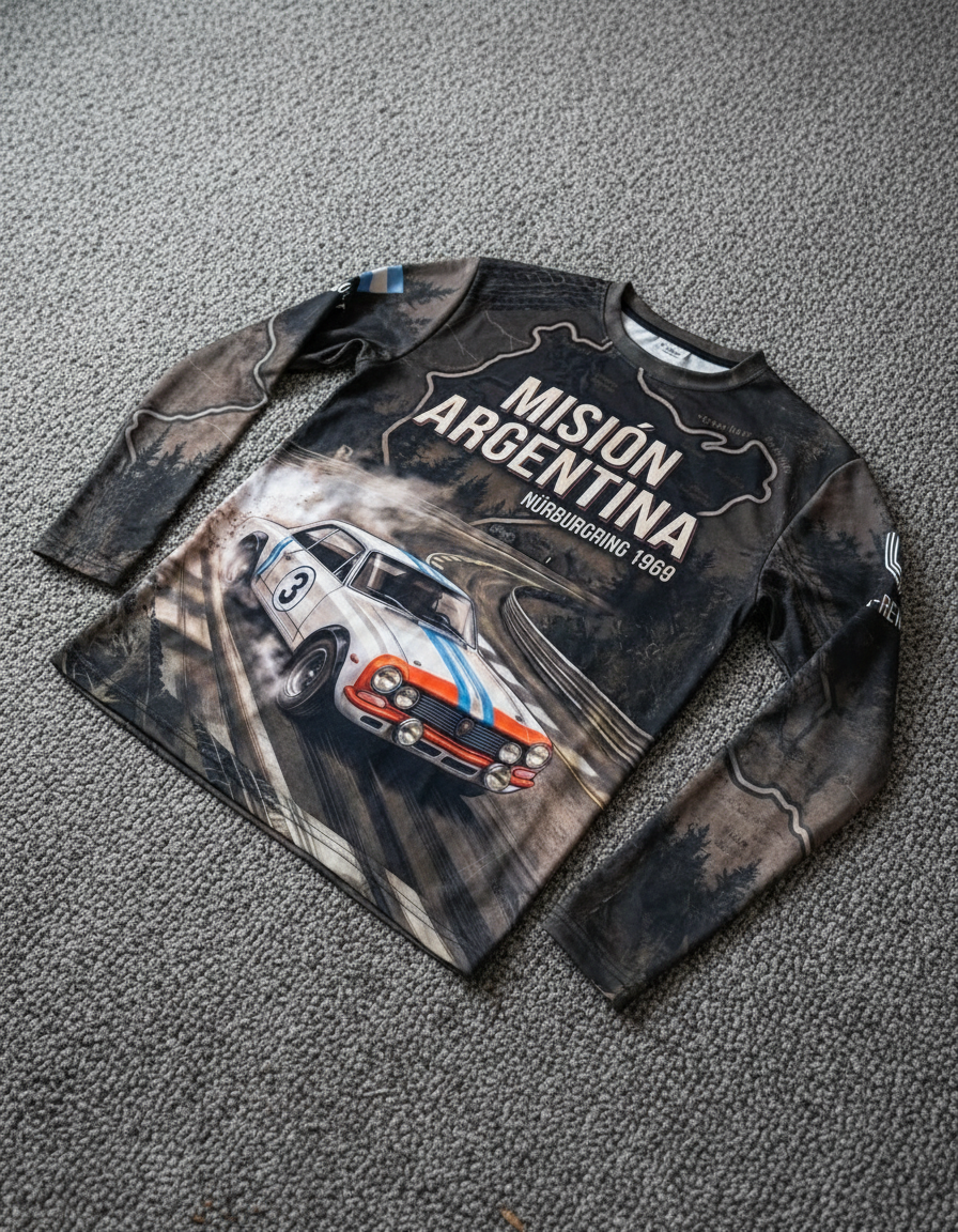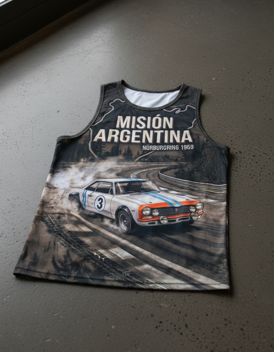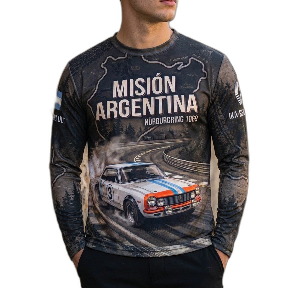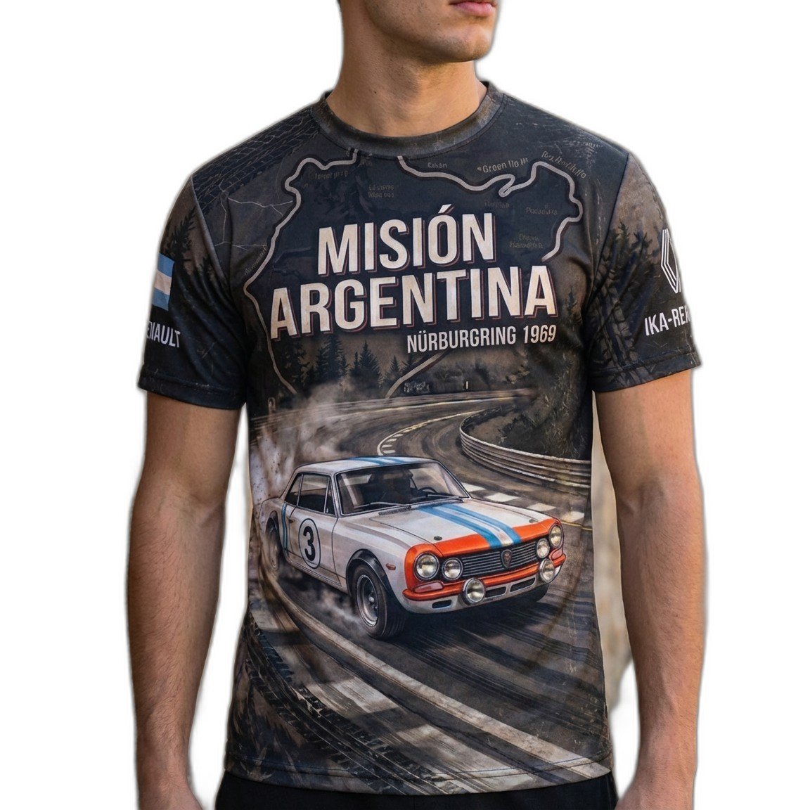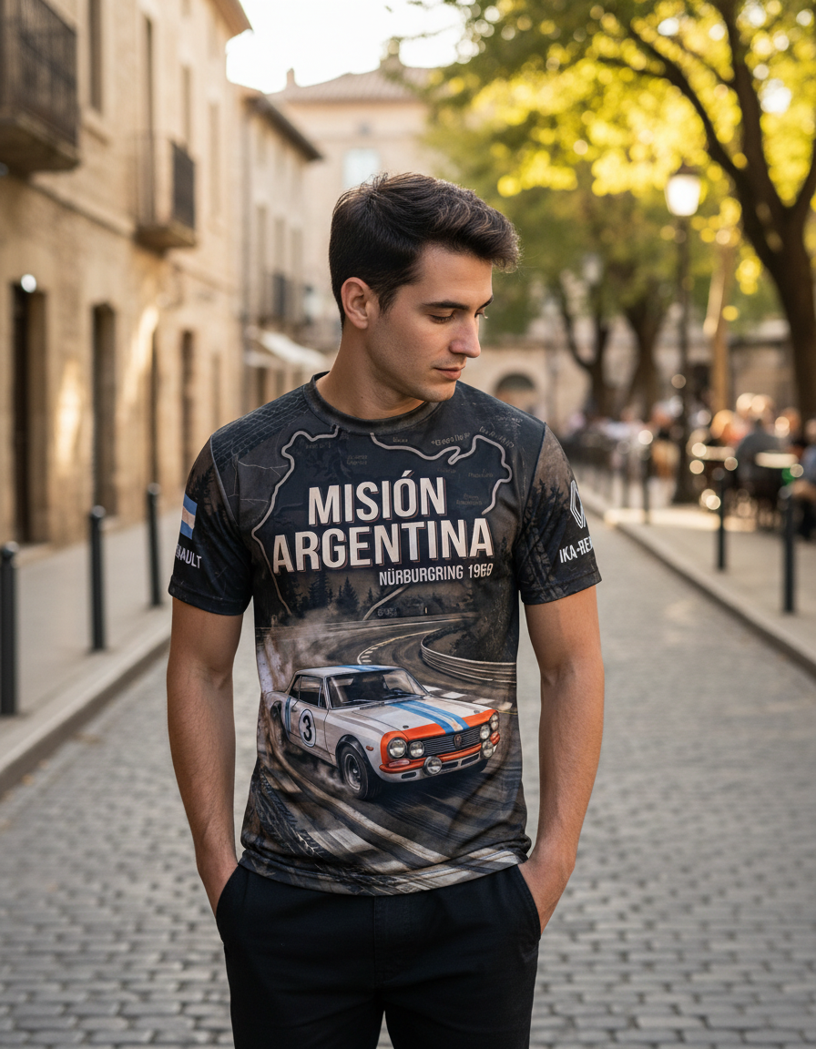 El gráfico distintivo, que captura la esencia del Renault Torino en el célebre circuito de Nürburgring, añade un toque de nostalgia y exclusividad a tu atuendo. Disponible en una elegante paleta de colores, esta remera se adapta perfectamente a cualquier estilo, permitiéndote expresar tu amor por la velocidad y la historia del automovilismo con cada uso.