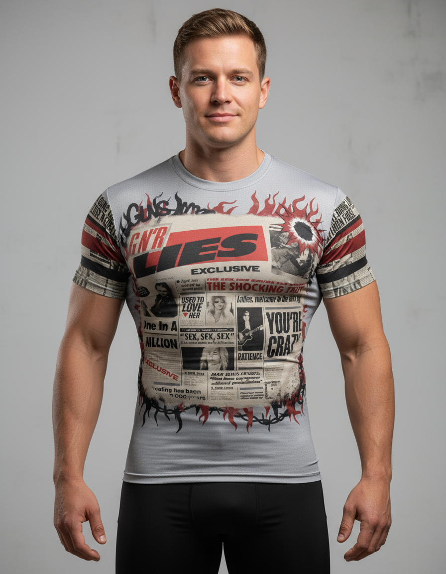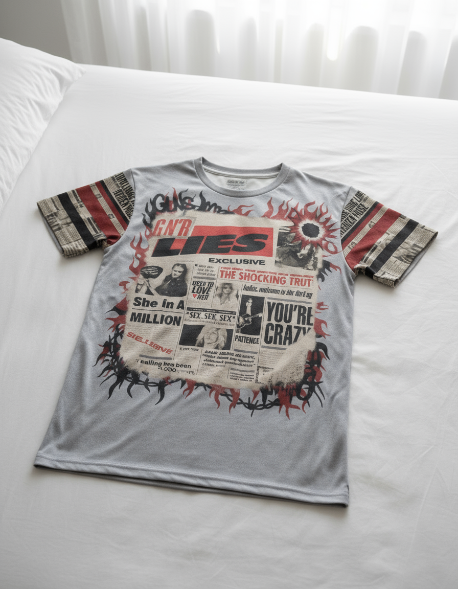 – Estilo: Gráfico de la portada del álbum “G N’ R Lies”